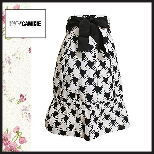 【ナラカミーチェ/NARACAMICIE】フレアスカート千鳥格子膝丈リボンベルト ティアード ハイウエスト 脚長効果1サイズ 匿名発送 送料無料
