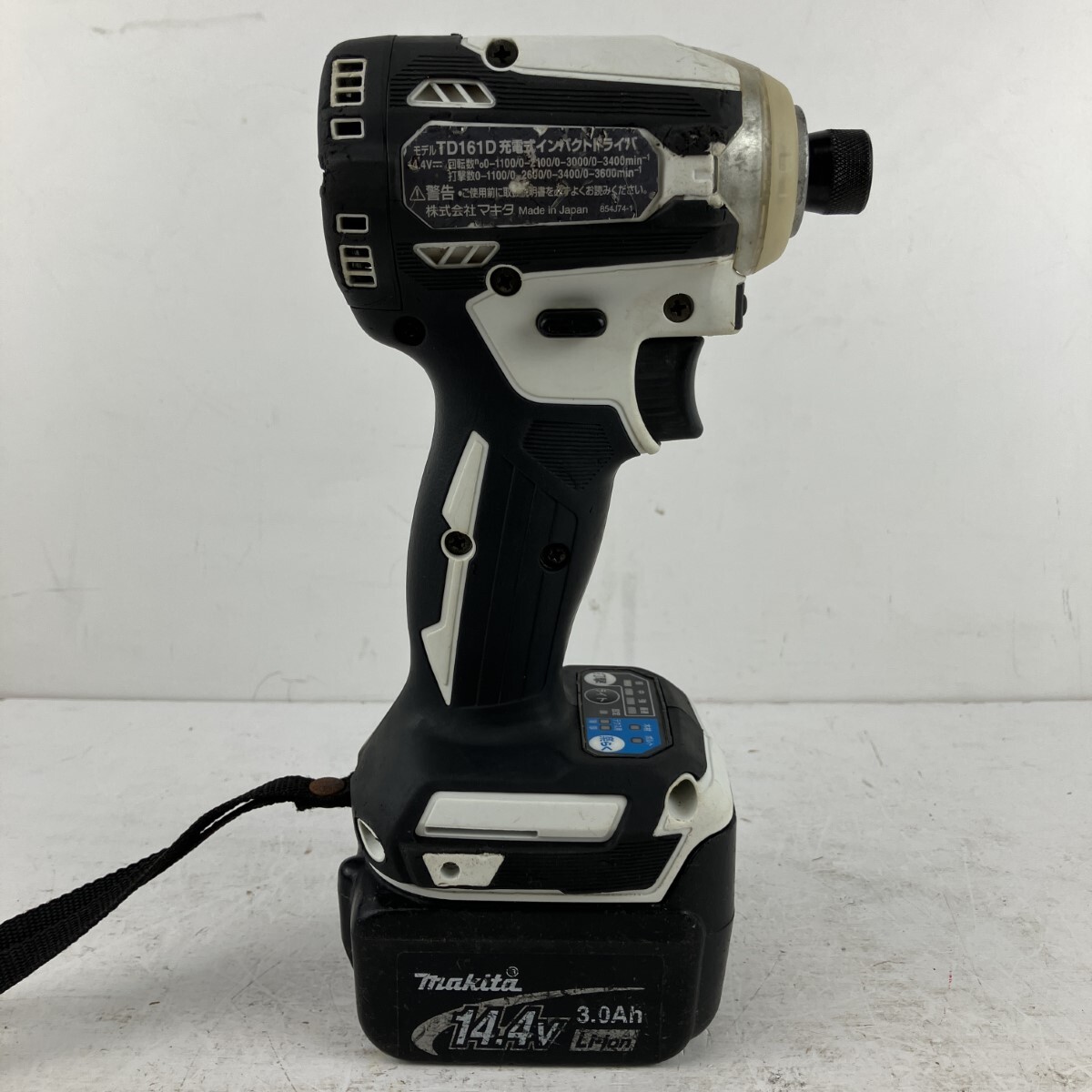 【商品名】中古 MAKITA マキタ 14.4v 充電式インパクトドライバ バッテリーx1付 ※充電器無し TD161D ホワイト 傷や汚れあり