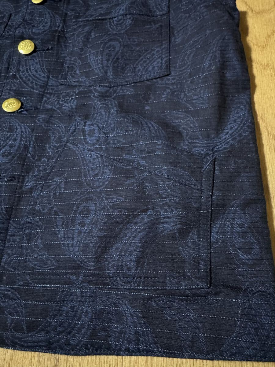 ファブリックにはオリジナルインディゴデニムロープウォバッシュ、ブラウンヒッコリーストライプ、ジャガードインディゴペイズリーの3色展開。