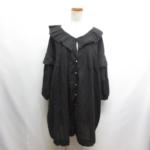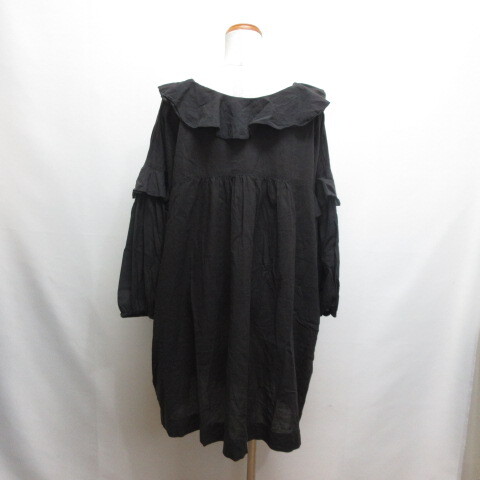 ニコアンド Niko and.. プレミアムローン ラッフル チュニック F 黒 ブラック 七分袖 透け感 レディース