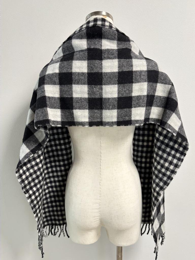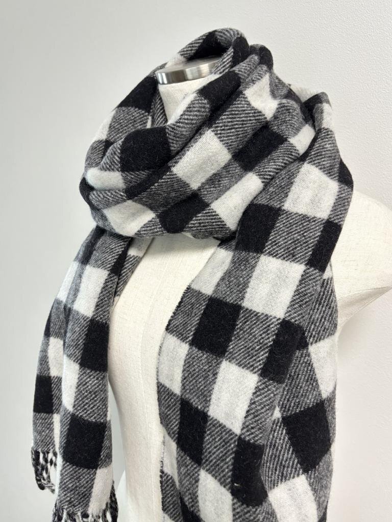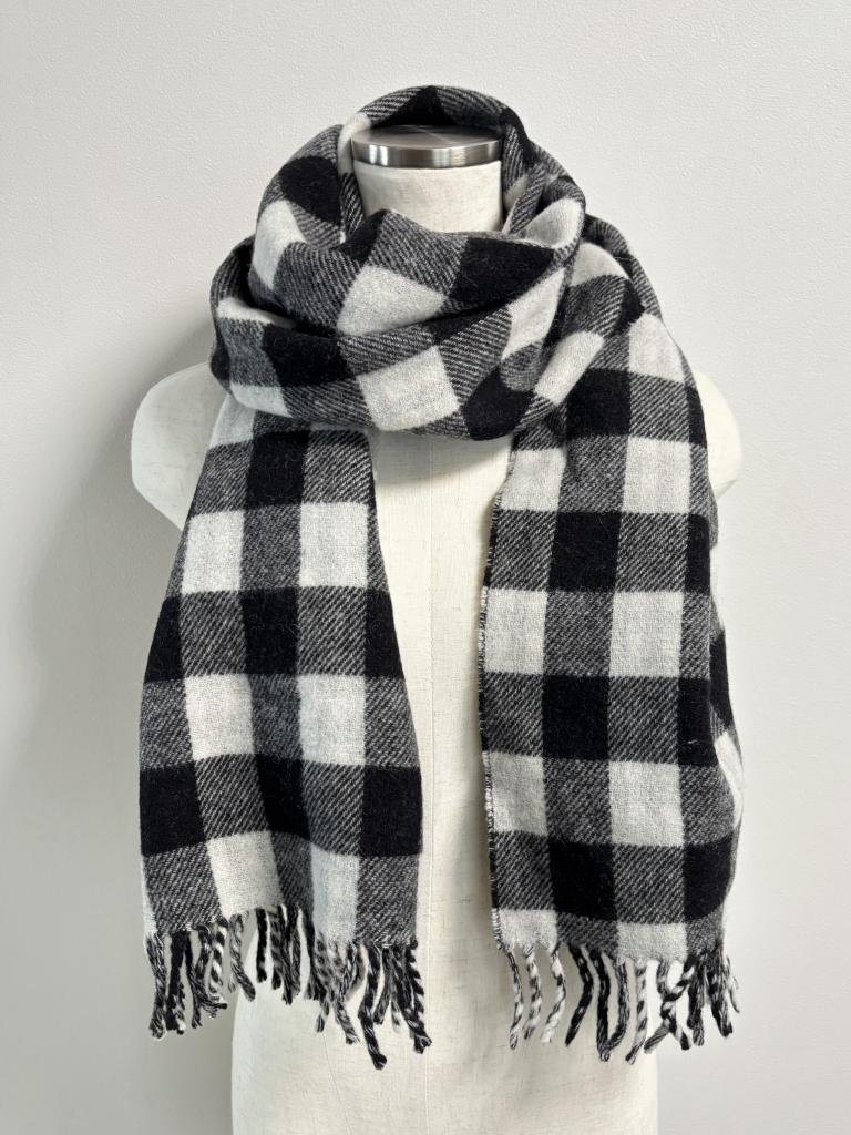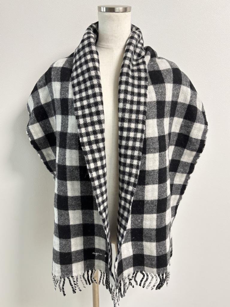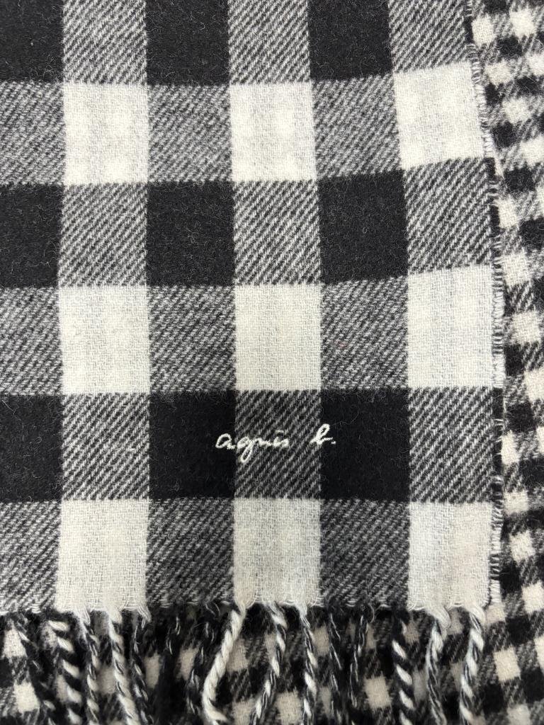 【送料込】agnes b アニエスベー ウール混ストール 全長(フリンジ含む)180 幅39 ブラック×ホワイト 小物 おしゃれ 6458017