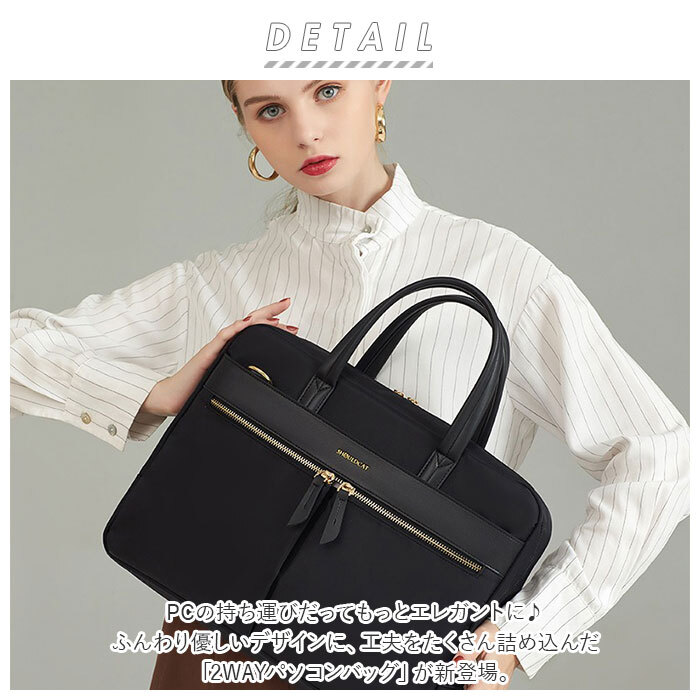 商品説明・・PCの持ち運びだってもっとエレガントに♪ふんわり優しいデザインに、工夫をたくさん詰め込んだ「2WAYパソコンバッグ」が新登場。