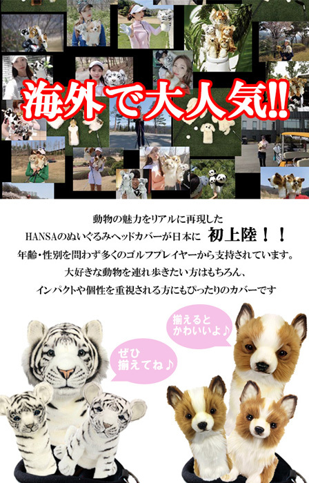 HANSA ハンサ ぬいぐるみ 8107 ドライバー用ヘッドカバー ホワイトタイガー WHITE TIGER ゴルフクラブヘッドカバー ドライバー用