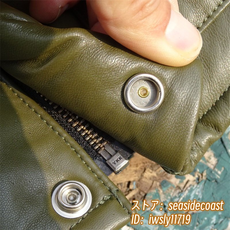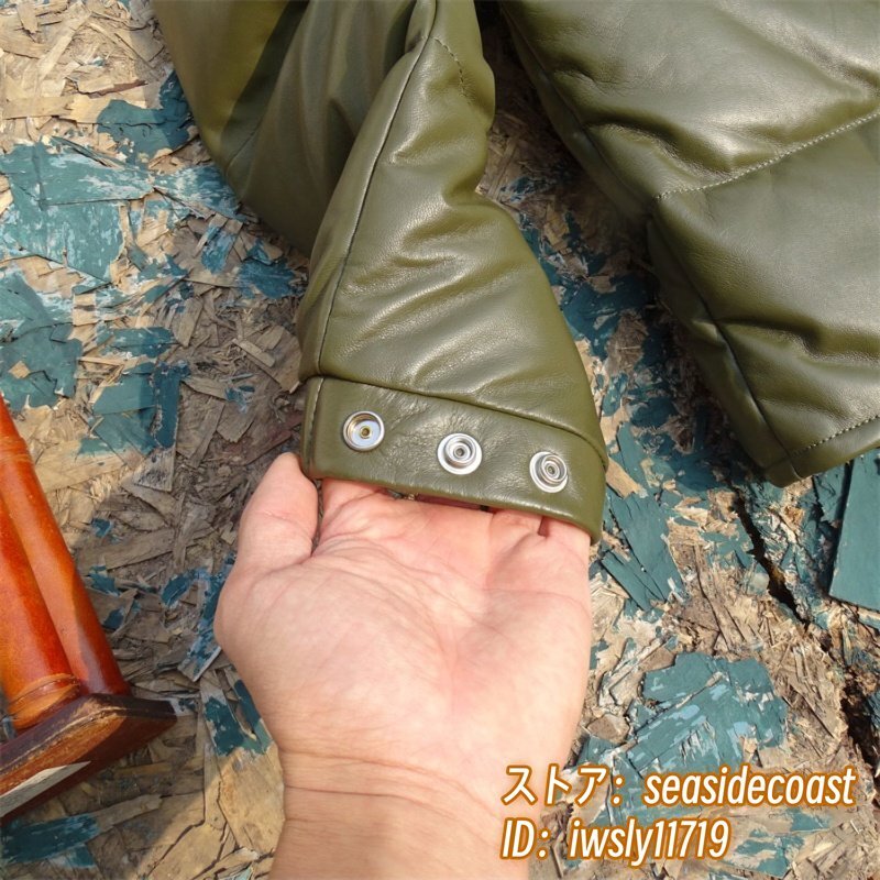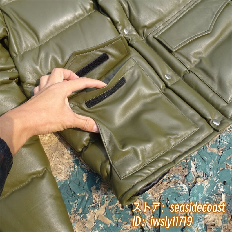 37万 最上級*ダウンジャケット 羊革 ダウンコート 厚手 ライダース 超レア色 イタリアンレザー*designer 最高峰 プレミアム 超防寒 L