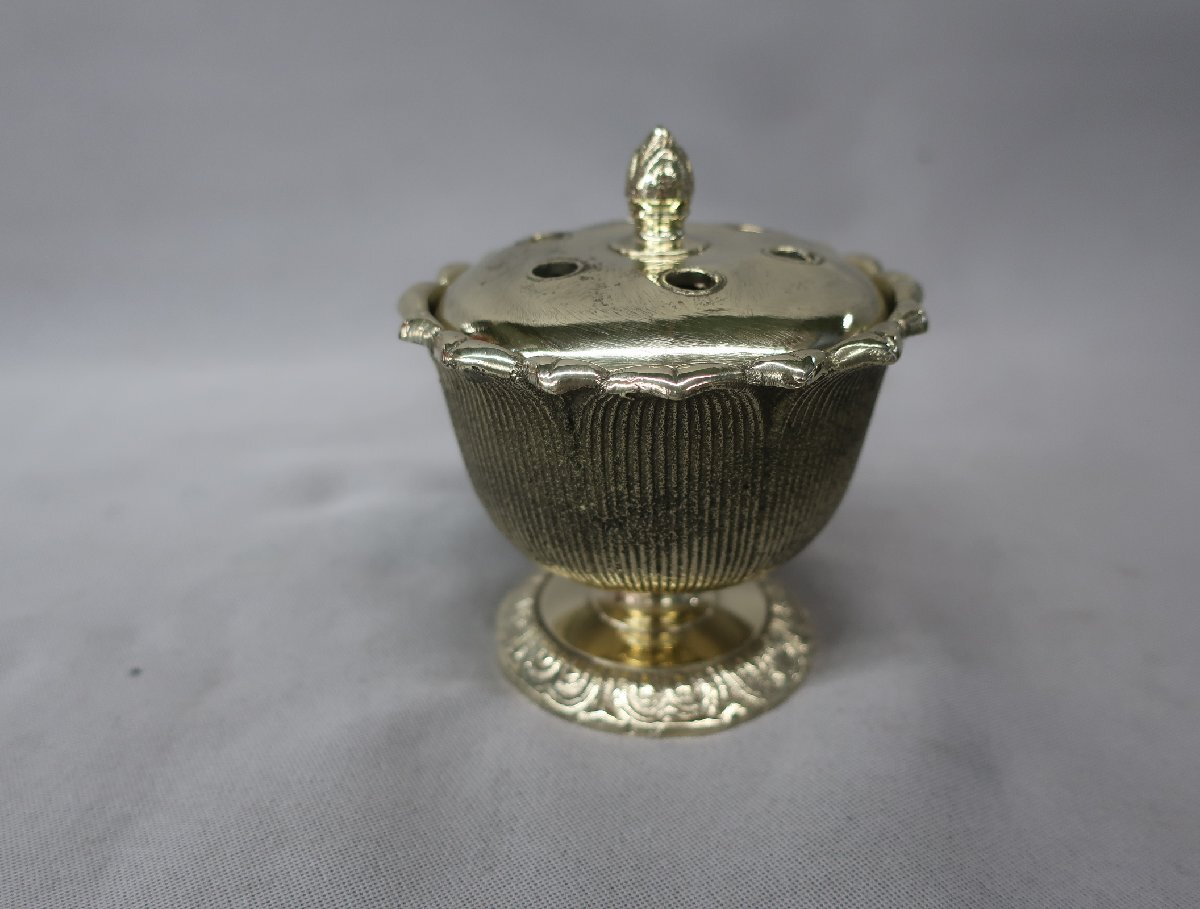 【K-2793】手香炉 鋳物製 真鍮製 蓮造り ミガキ品 アウトレット品