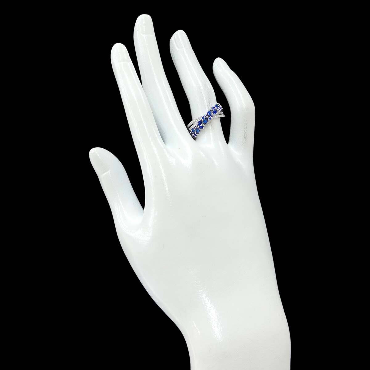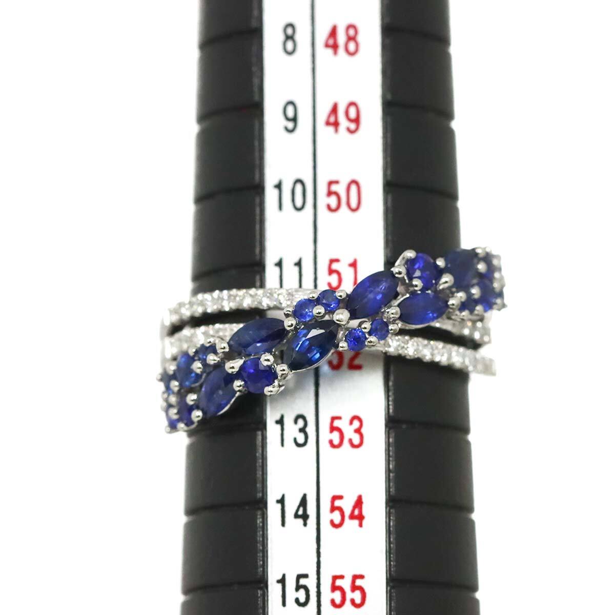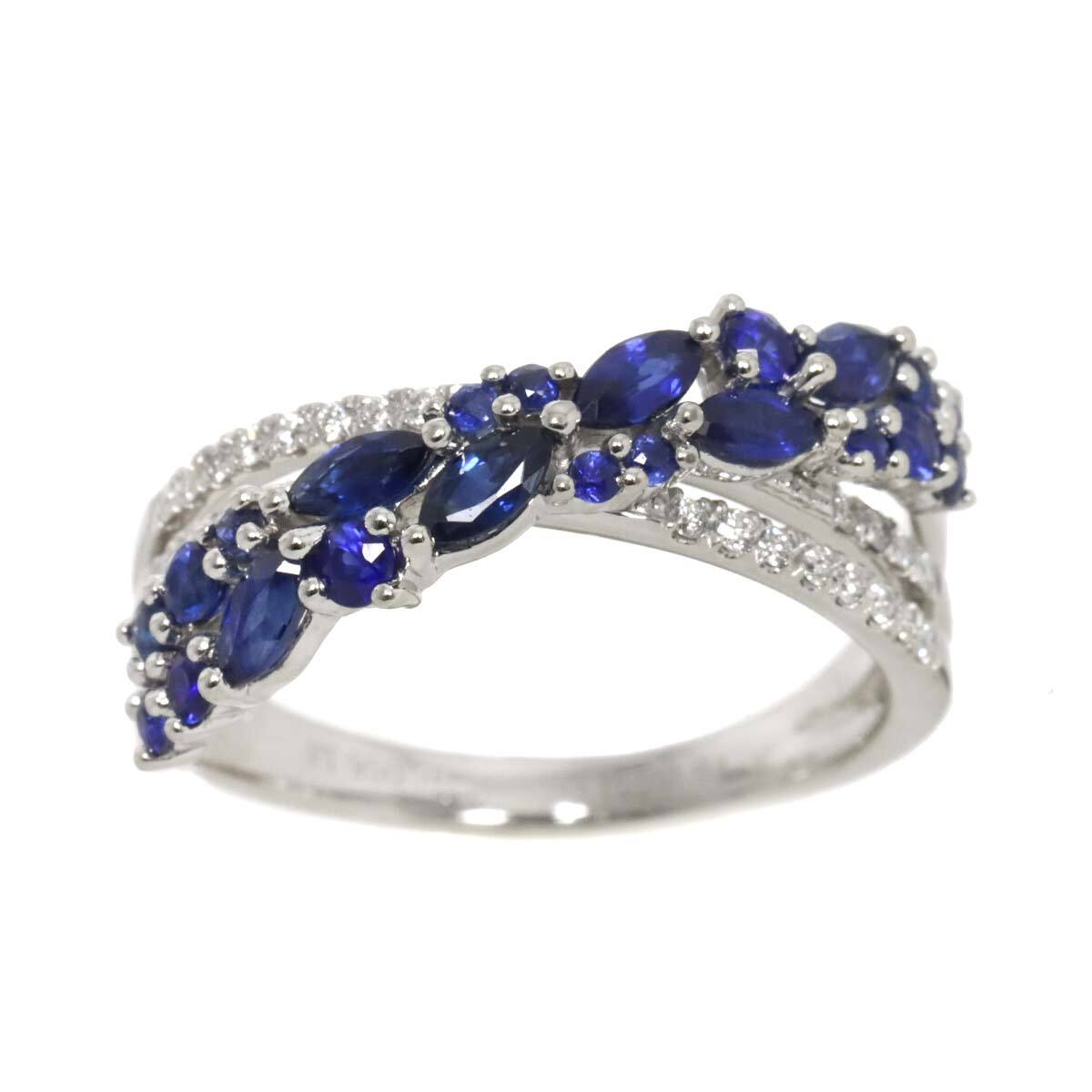 商品概要 | サファイヤを配したデザインリングです。ダイヤの煌めきが高級感を引き立て、指元を美しく演出してくれます。 |