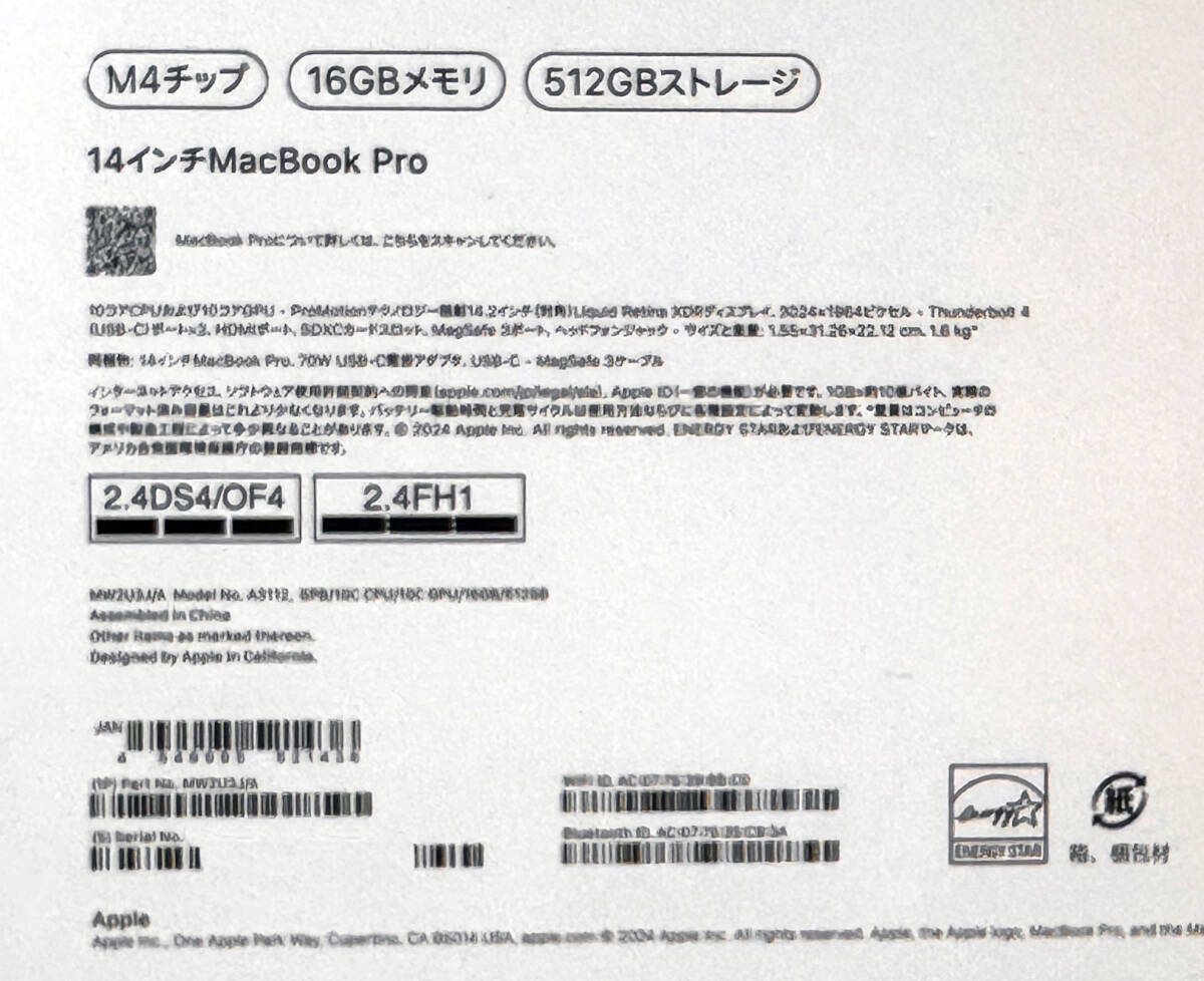 • プロセッサ: Apple M4チップ(10コアCPU:高性能コア4つ+高効率コア6つ)