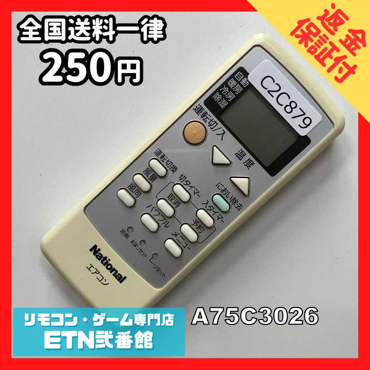 C2C879 【送料250円】エアコン リモコン / National ナショナル A75C3026 冷房 暖房 動作確認済み★即発送★