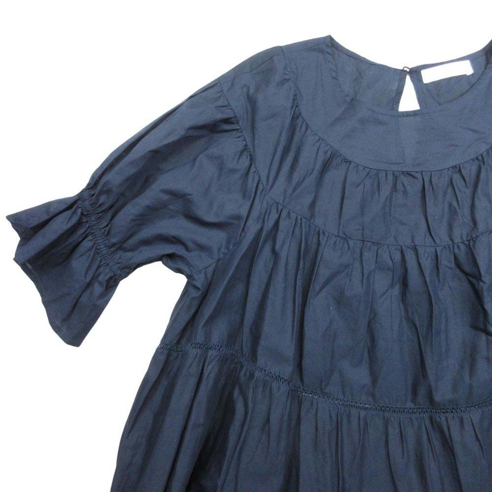 商品名:22ss merlette マーレット PARADISE パラディス コットン パフスリーブ ティアード ワンピース ドレス XS 紺 ネイビー