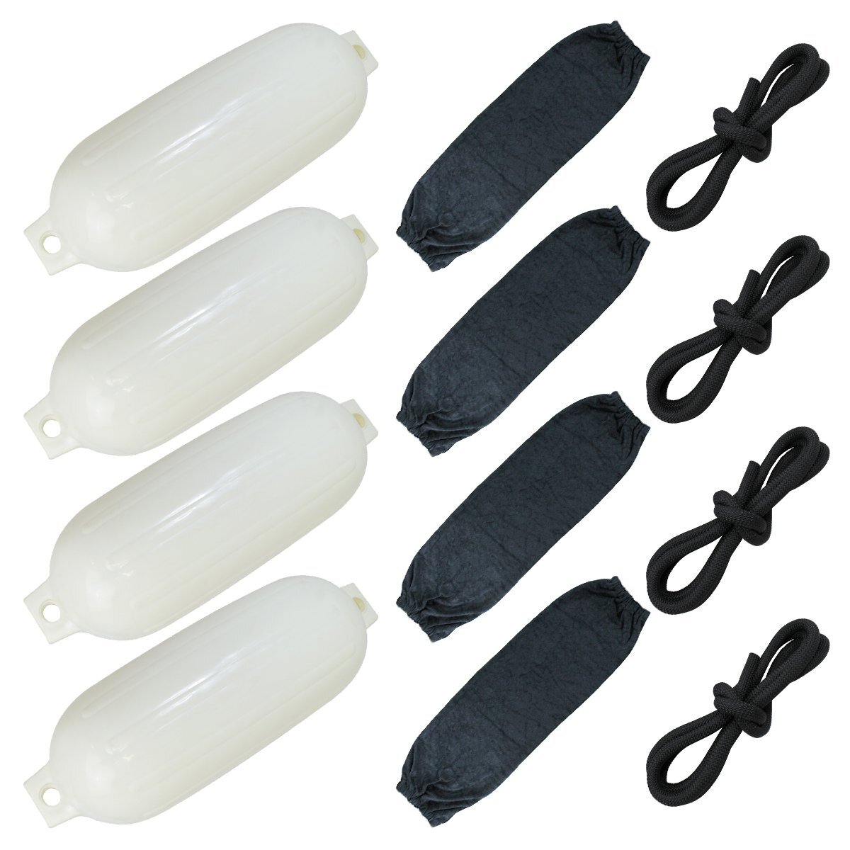 【新品即納】『3種×4セット』ボートフェンダー 580×190mm&黒カバー&ロープ 黒 2m 船 浮き ブイ フロート 係留ロープ
