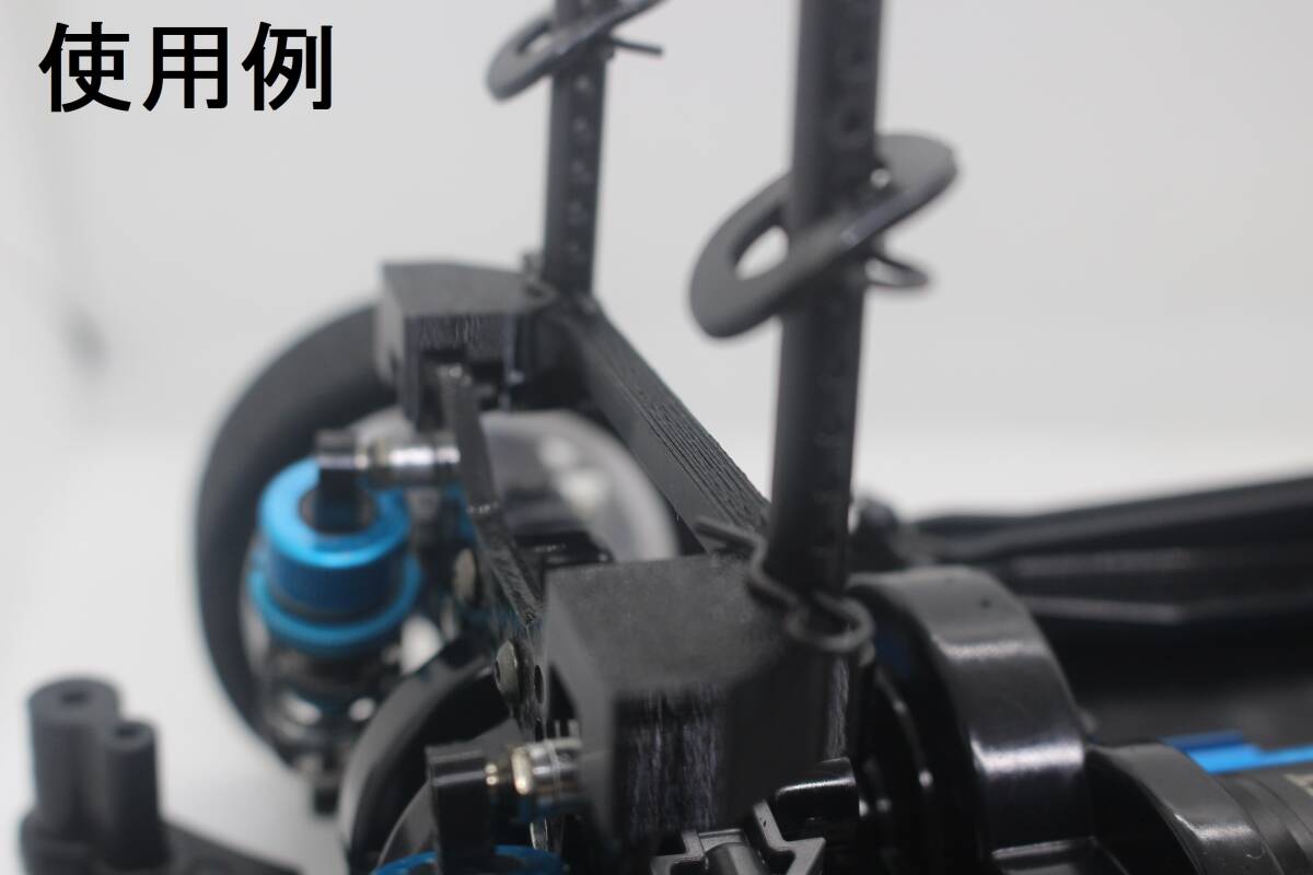 FRPおよびカーボン製リヤダンパーステイ専用としボディマウントと共に上から被せスナップピンで固定します