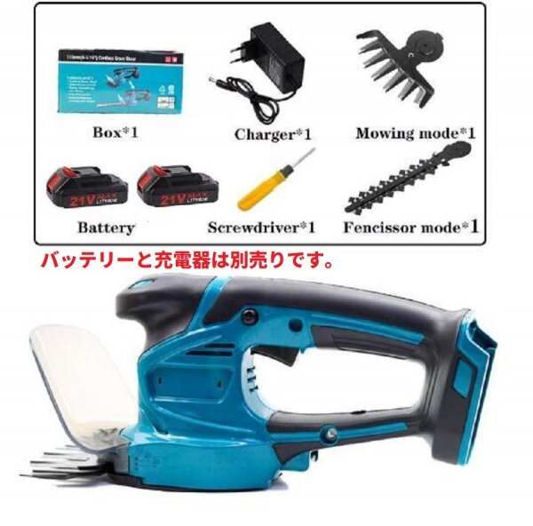ヘッジトリマー ヘッジクリッパー 充電式 トリマー 芝生バリカン 生垣バリカン 2刃付 1台2役 両刃駆動 芝刈り機 コードレス本体のみ