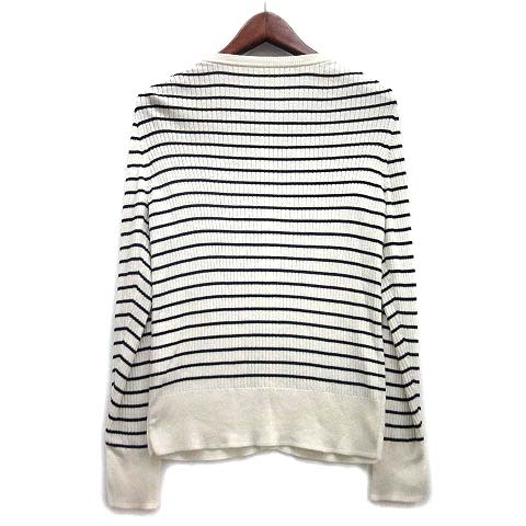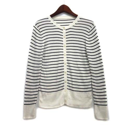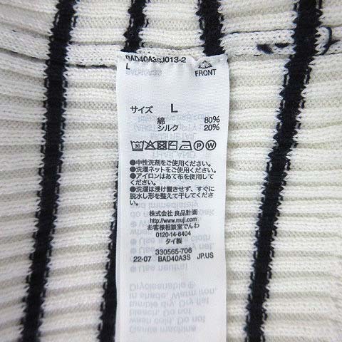 無印良品 良品計画 コットン シルク シルク リブ ボーダー ニット カーディガン 長袖 ホワイト ブラック 白 黒 L レディース