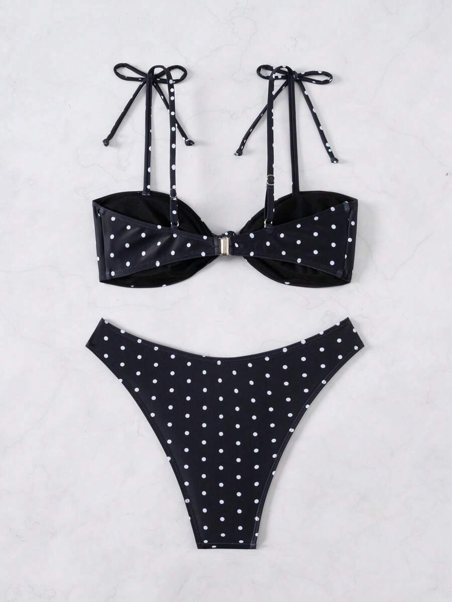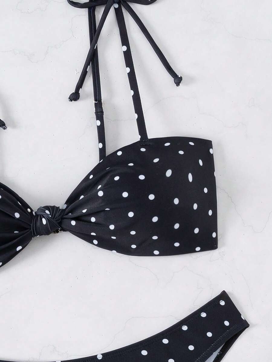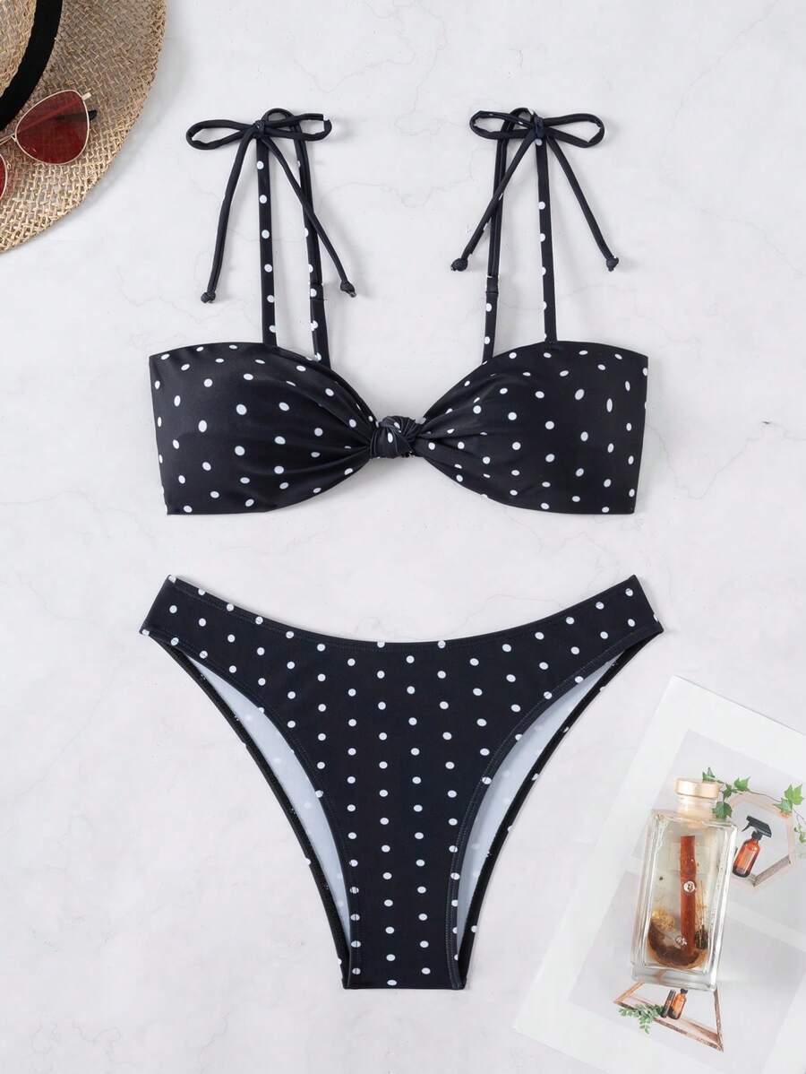 レディース 水着 ビキニセット 2枚セット ウーマン ドット柄 ツイストノット前開き ビキニセット、リゾートカジュアル水着、夏のビ