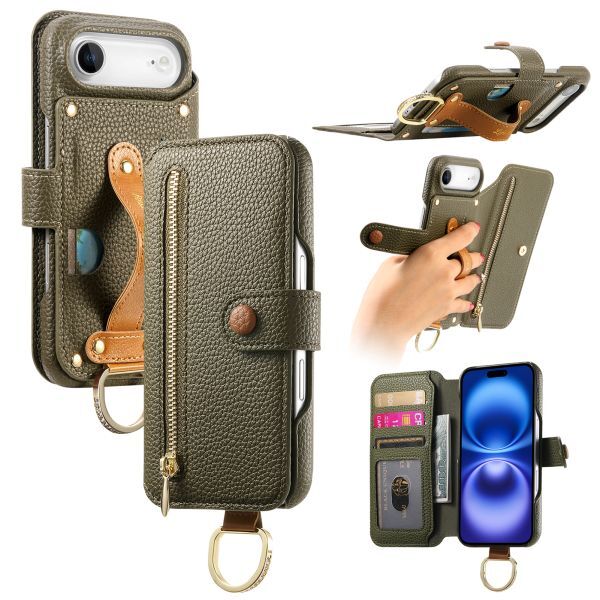 送料無料 グリーン iPhone17air ケース 手帳型 スマホケース 小物入れ 超繊皮 RFID磁気防止 スキミング防止