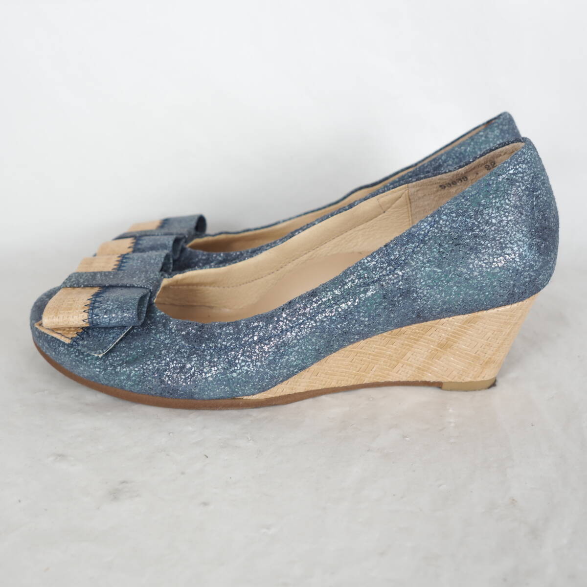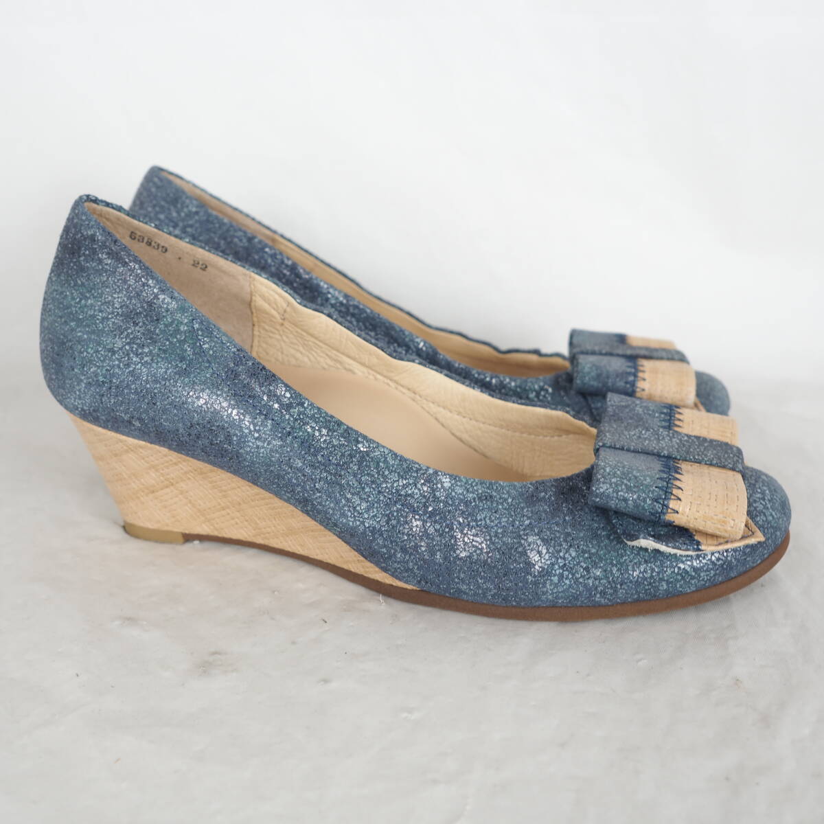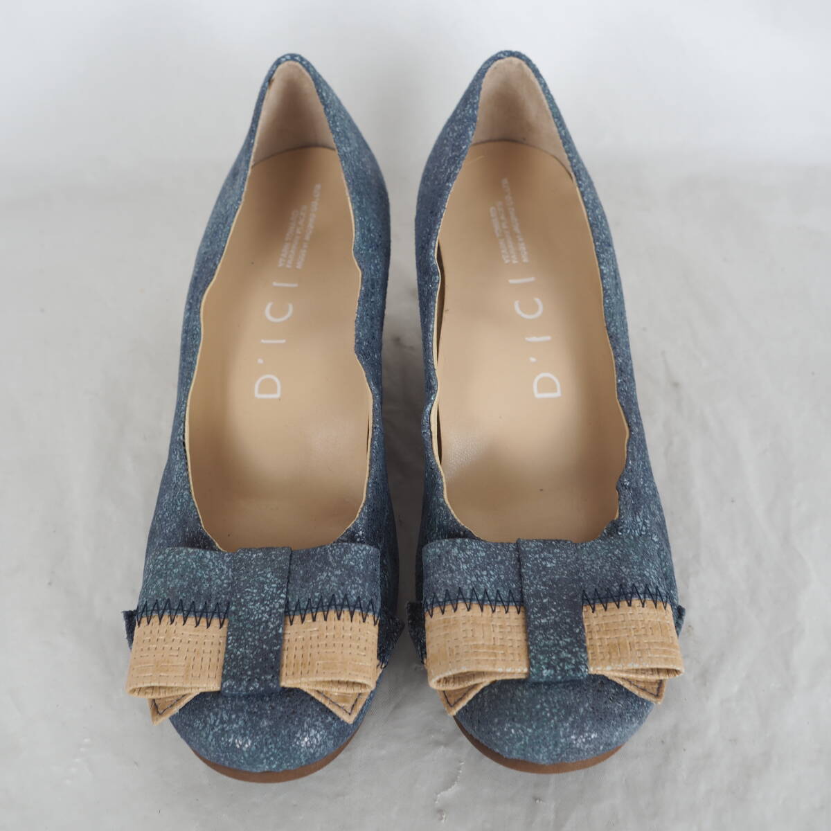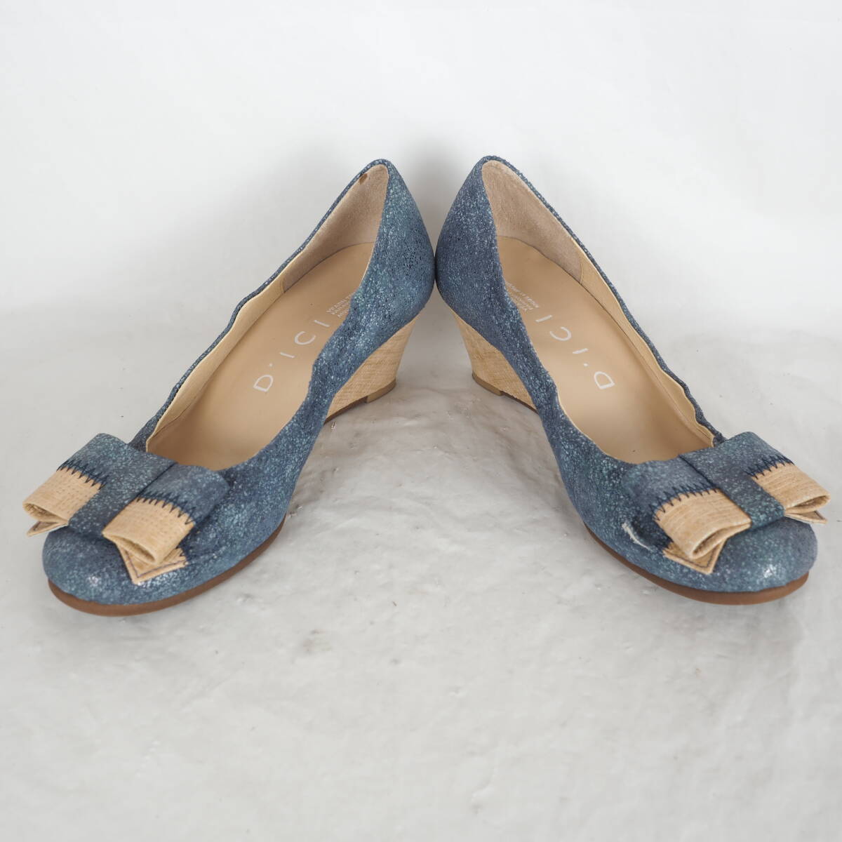 ページをご覧いただきありがとうございます^^靴、ブーツを中心に出品しております。 D’ICI(ディッシィ)のウェッジソールパンプスです。 デニム調のブルーにベージュのリボンがアクセントになった可愛らしいデザイン。 安定感のあるウェッジソールで歩きやすく、普段使いからお出かけまで幅広く活躍します。 ☆商品詳細☆
