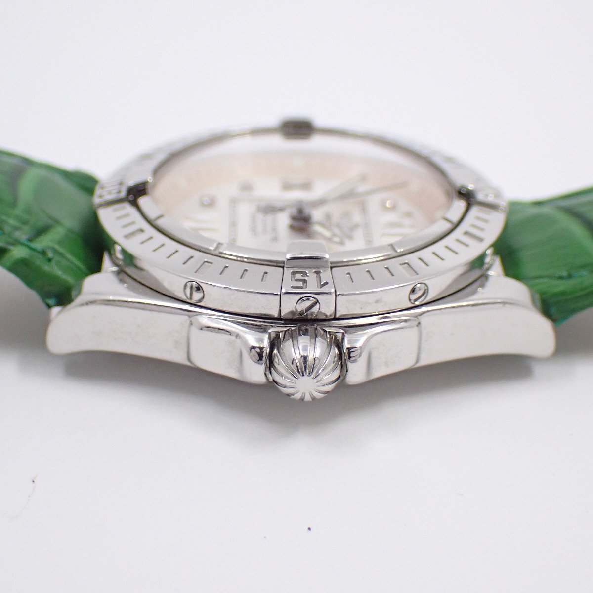 ベルトと尾錠は社外品に交換されておりますが、6時側に左側の付け根の部分に貼り合わせのはがれが見られます。