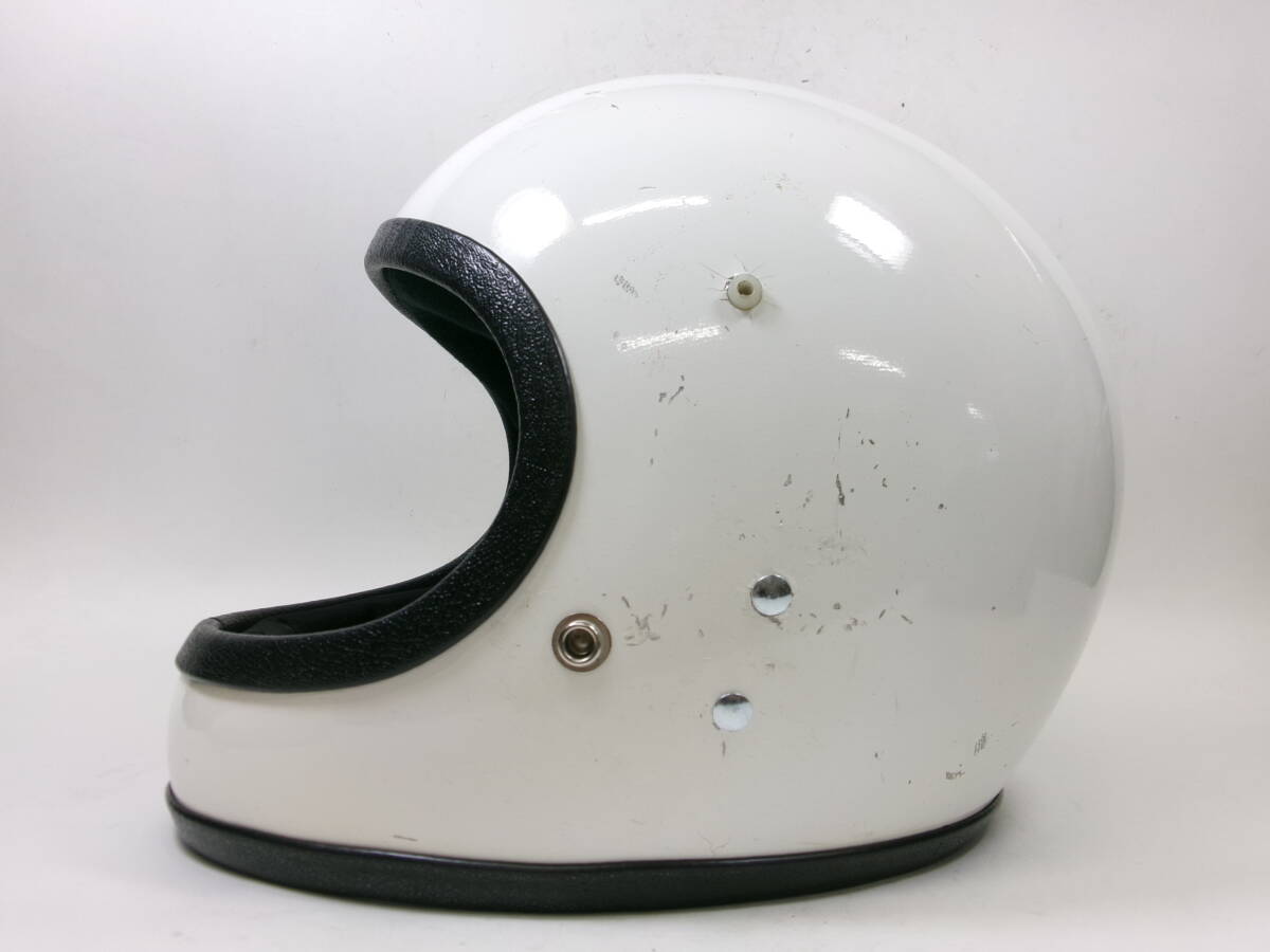 ■外装状態: 傷はありますが、全体的に艶もある状態です。 ■内装状態: 新しい生地&スポンジでリペア済みなのですぐに使用可能です。 ■サイズ: 表記 L ですが被った感じMサイズ (約58cm)位です。 若干の誤差はご了承下さい。 ■コメント: 1974年製 SAFETECH PRO フルフェイスヘルメットです。こちらはサイズに関係なく帽体サイズはすべて同じになります。 帽体も小ぶりで、内装は加工済みなので目深に被れシルエットは抜群にかっこいいです。 オリペン、デカール類もオリジナルです。 お探しの方はこの機会に是非! ※装飾用です。公道での使用はお控えください。 |