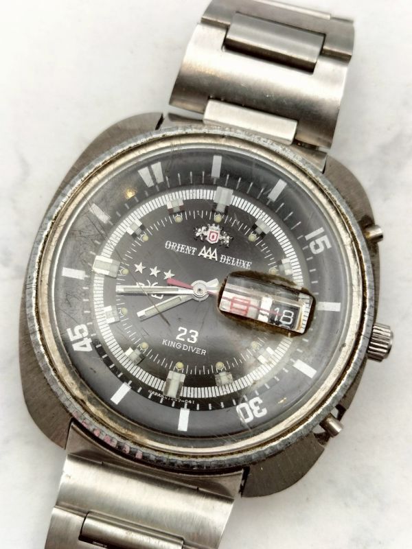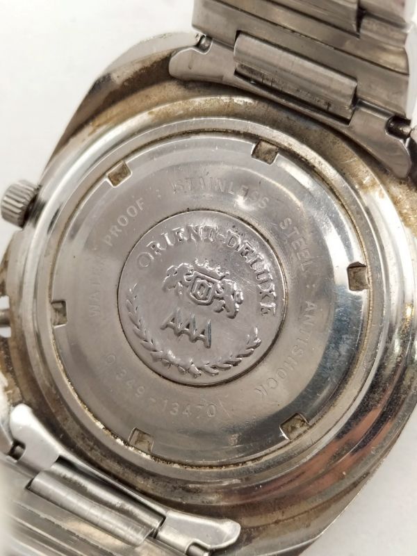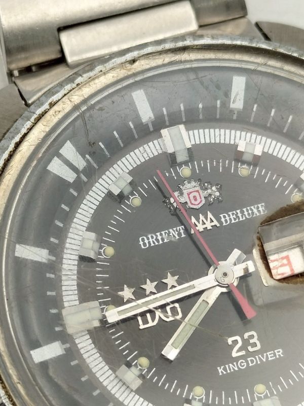 R7-565 1円~ ジャンク品 オリエント デラックス キングダイバー 23石 デイデイト 自動巻き 腕時計 ステンレス メンズ シルバーカラー