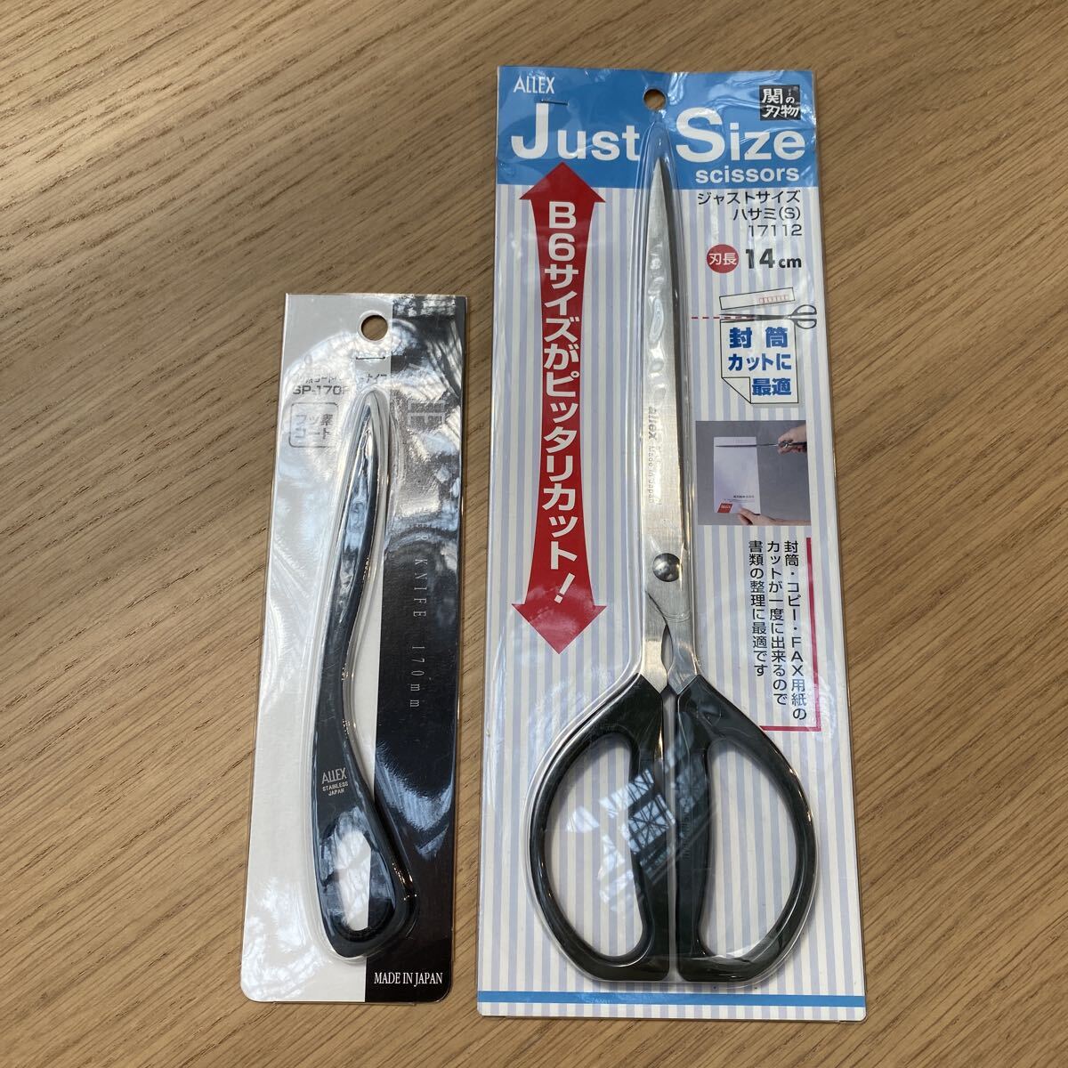 【訳あり/未使用】ALLEX Just Sizeハサミ(S)17112 +ALLEXフッ素コートペーパーナイフ SP-170F【2点セット】