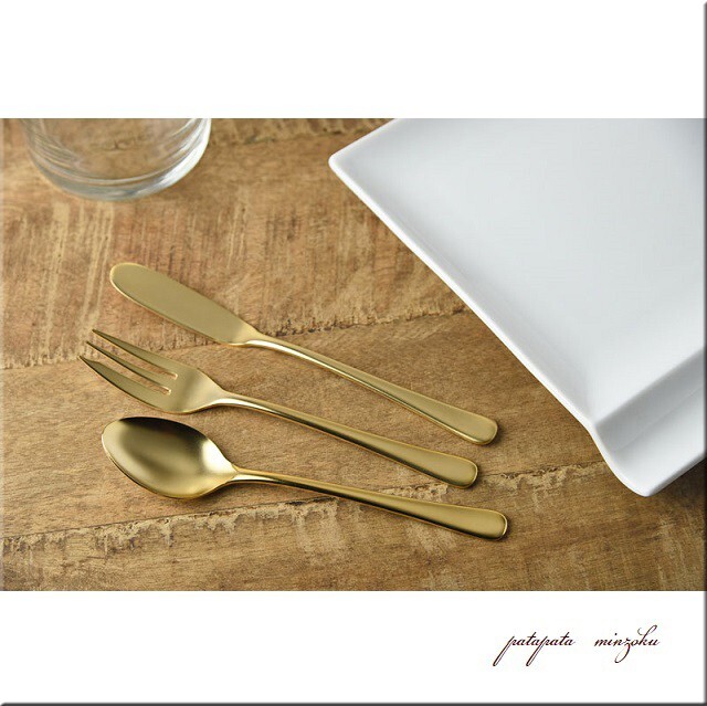 食卓のアクセントに使いやすい、マットゴールドのカトラリーです。