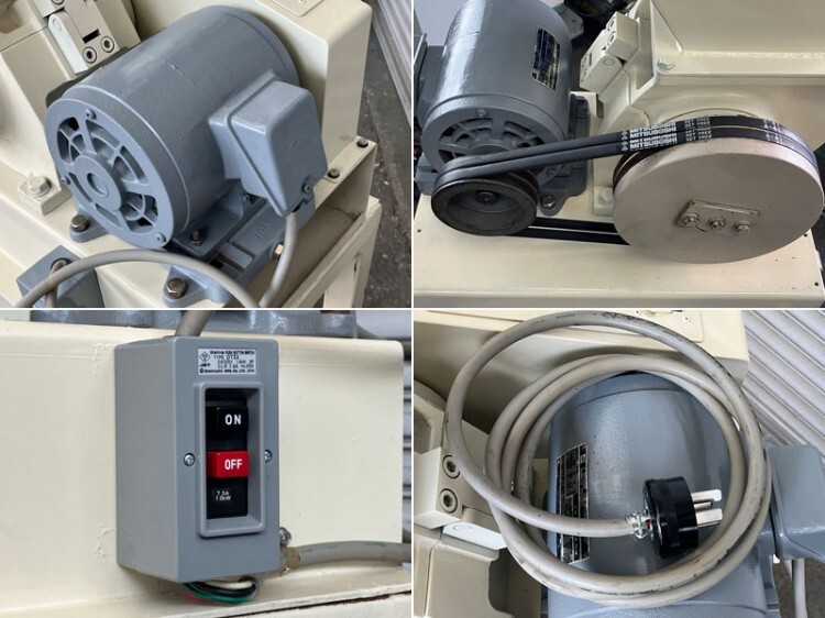 詳細備考 | 【備考】 分解清掃、再塗装済みです。 刃は現状(研磨推奨)です。 ノブボルト(市販品)に欠けが有ります。 自在キャスターの玉が欠落しているため移動に支障が有ります。 下記部品交換済みです。 ・主軸ベアリング ・モーターベアリング ・Vベルト ・サーマル付ON-OFFスイッチ |