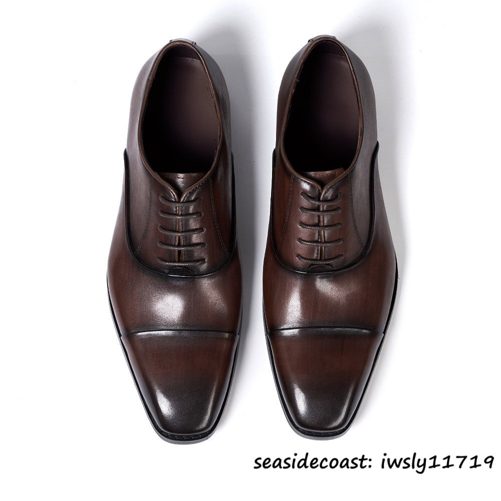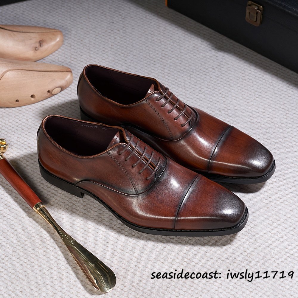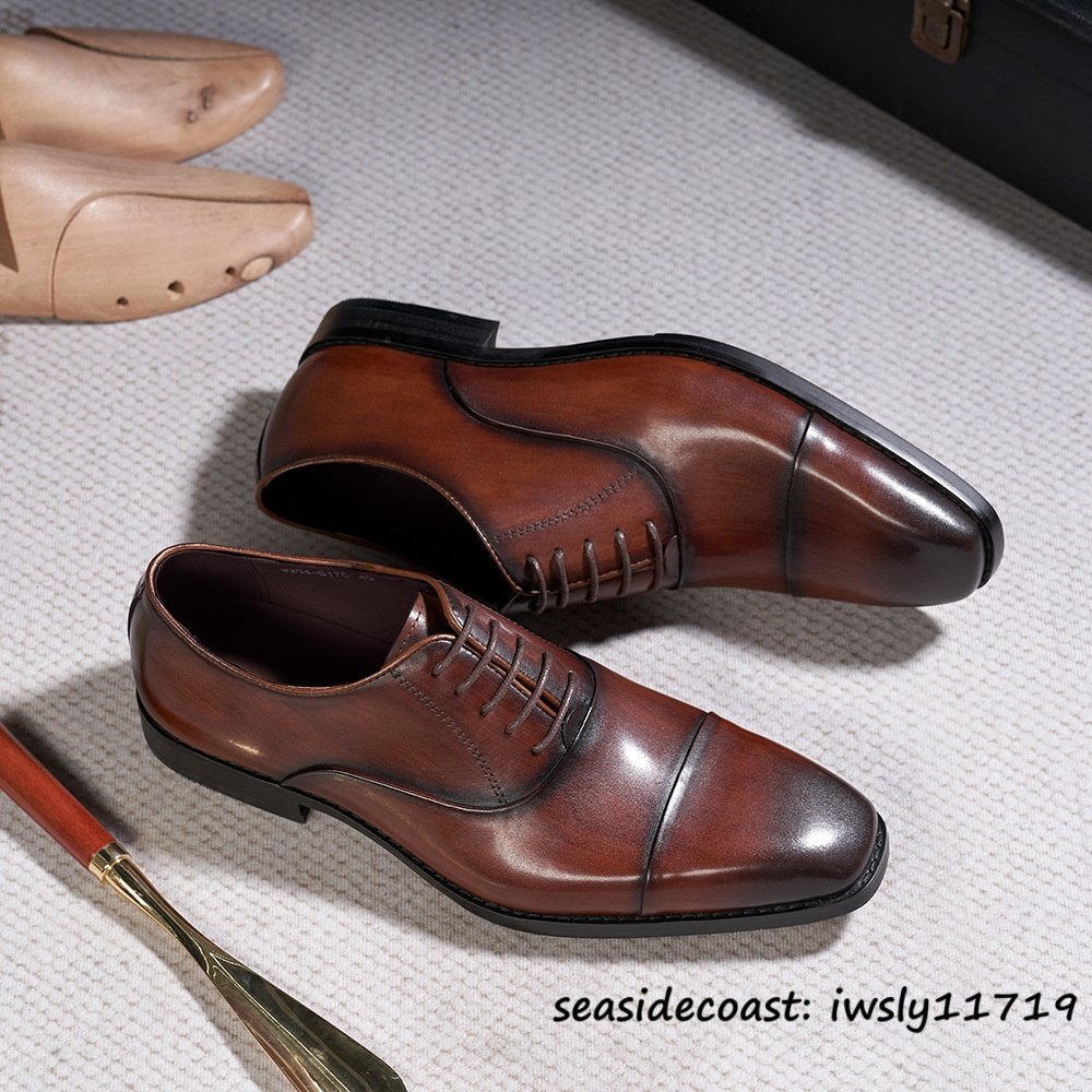 極美品★定価10万超 ビジネスシューズ メンズ 本革 レザーシューズ 職人手作り 紳士靴 牛革革靴 冠婚葬祭 フォーマル 宴会 ブラウン 28.0cm