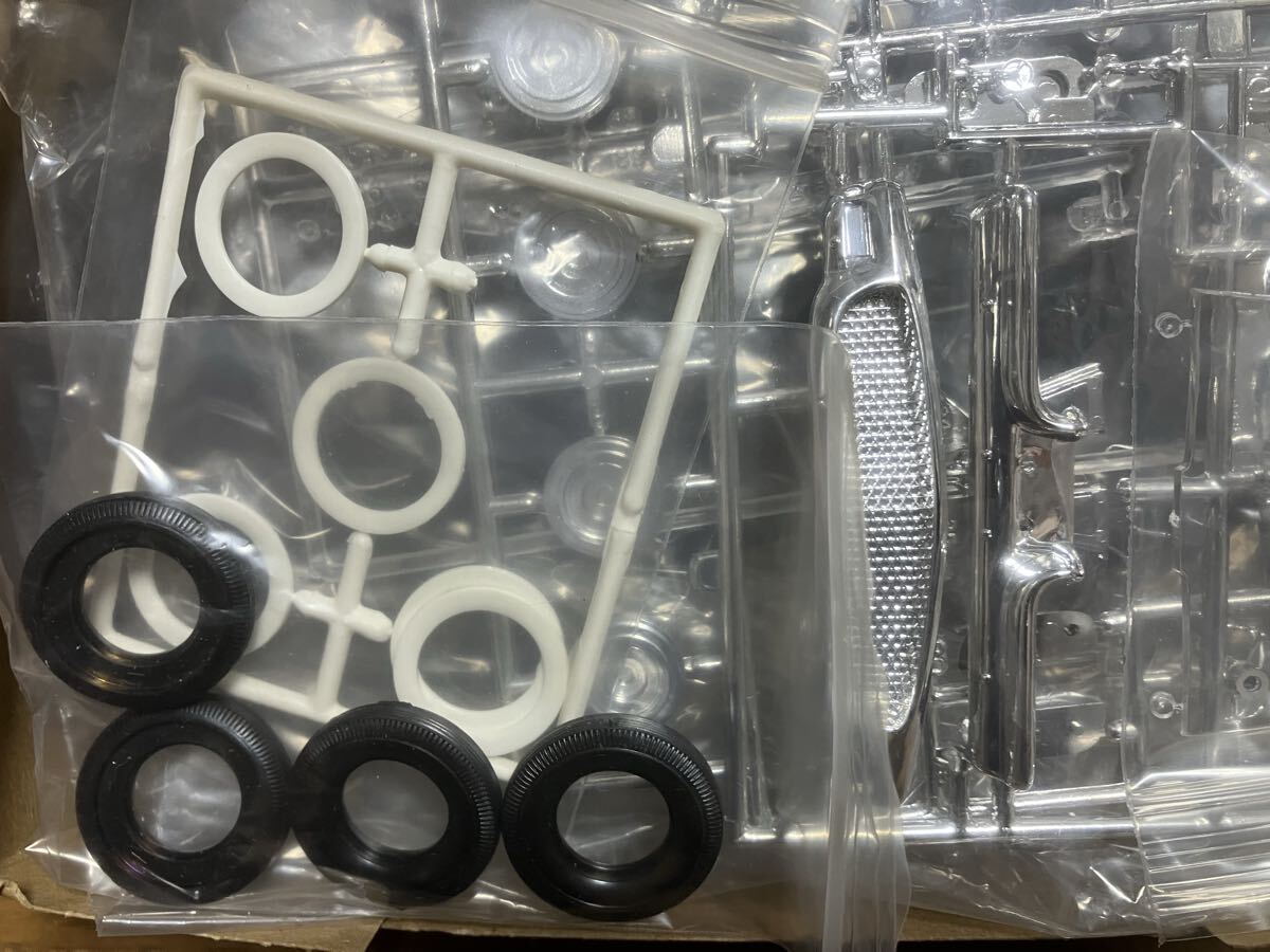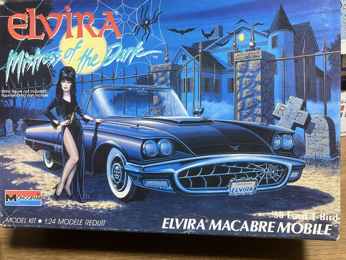 モノグラム1/24 '58 Ford T-Bird ELVIRAMACABREMOBILEを出品します。中古品を購入、冷暗所に保管していたものです。エルバイラのフィギュアは元から付属していません。輸入キットのためパーツがそのまま入っており多数の脱落があります。前所有者が種類毎に袋に入れています。見た限りではパーツは揃っているようですが保証はできません。箱等にスレ、キズがあります。入手困難なキットにつき取引に関してはノークレームノーリターンでお願いします。発送は、ヤフネコ、ゆうパックとなります。
