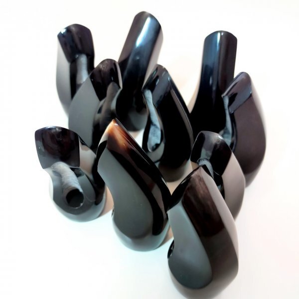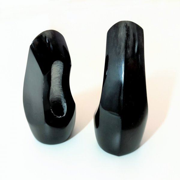 商品説明 | 必ず本文全てお読みください。 三線演奏用の水牛製特有の弾きやすさで人気の爪1点と、親指にはめて使うタイプのピック1点のセットです。 爪は、以前販売していたものよりやや爪先が太く穴は浅めになっております。(仕様は多少変更となる場合がございます。特価品である事をふまえてご理解の上ご購入くださいませ。) ピックは爪では弾きにくい時や、速弾きに最適です。 【爪詳細】 ・高さ:約6.6~6.9cm程度 ・直径:約2.5~2.9cm程度 ・爪先幅:1.4~1.8cm程度 ・指穴のサイズ:直径約1.6~1.8cm程度 ※天然素材を元に手作業で作成している為、多少サイズ誤差や歪みは発生いたします。 ※ご自身でヤスリや刃物を使って加工調整することができます。 ・原材料:水牛の角 ※天然素材のため完全な黒ではなく白いスジやひび等が入ります。傷のように見えますが素材由来のものです。 <ピック詳細> ・大きさ:約2.6cm X 3.3cm ・指穴のサイズ:約1.5~1.8cm程度 ※ドライヤー等で温めてサイズを多少調整可能です。 (火傷注意。ご本人のご責任のもと行ってください) ▼以下もお読みください▼ こちらは「特価品」です。高いクオリティーや完璧を求める方、神経質な方はご購入はご遠慮ください。ワンランク上の高品質の商品もございますのでお尋ねください。(価格は特価品に比べどうしても高くなります。)こちらの特価爪を愛用されている方は多くいらっしゃいます。 また爪のひび割れ・指穴サイズは不良に該当いたしません。 ひび割れやスジは傷のように見えますが素材由来のもです。 指穴サイズにつきましては、各商品ページに記載しております。 (※手作りのため1ミリ程度はどうしても前後いたします。) 穴サイズが小さい場合はご自身でやすり等で削って調整する事が可能です。 以下はとある職人の方から聞いたお話です。 「時々指穴の大きさにこだわる人がいるけれど、三線は爪の穴に指先をそっと添えるようにして演奏するものだよ。指ぬきではないよ」 当店では、個人で楽しむ場合は演奏方法も自由になさって良いかと考えておりますが、もしご不便があるようでしたら爪の持ち方を見直されるのもひとつの方法かもしれません。 |