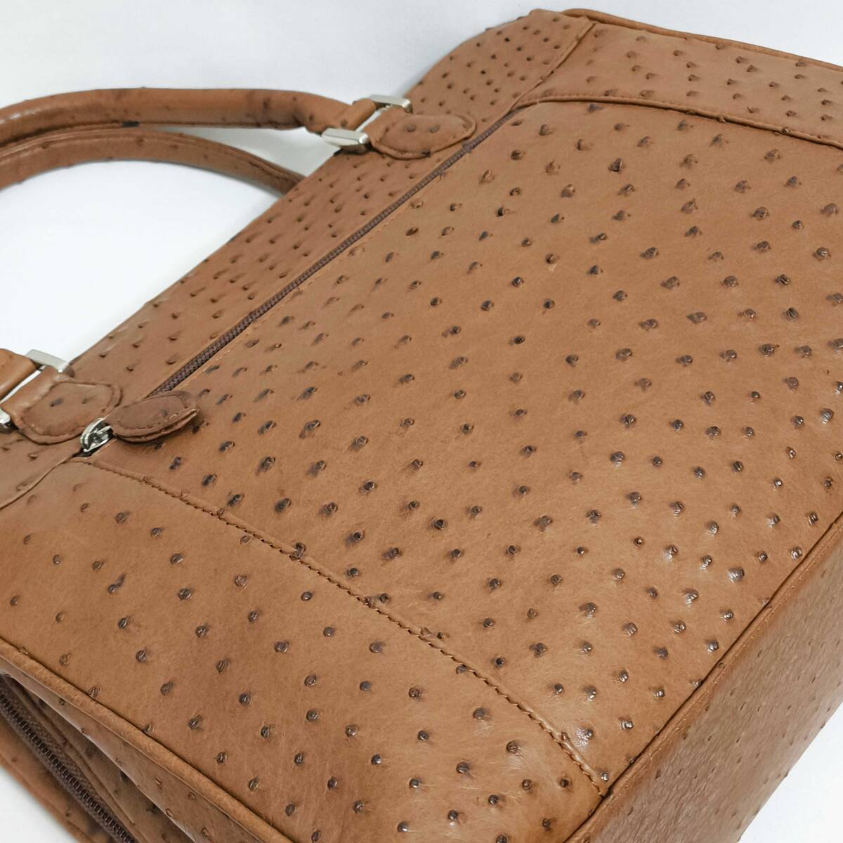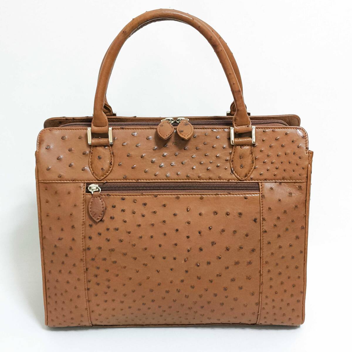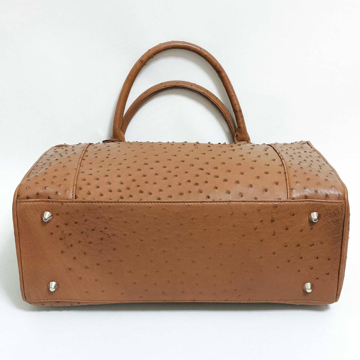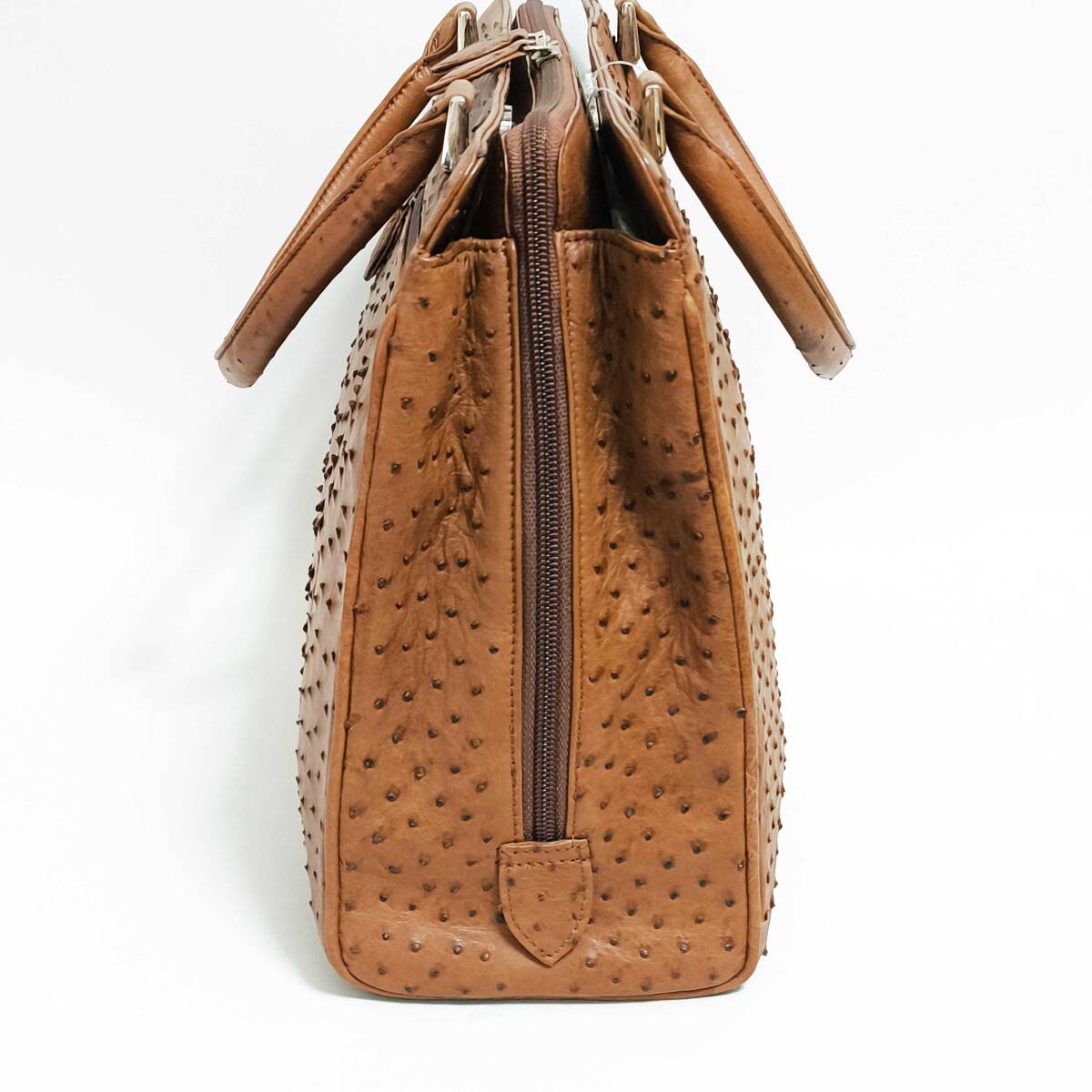 【未使用品】オーストリッチ(ダチョウ革)レザー ハンドバッグ ニコチン(ブラウン) / o-10314