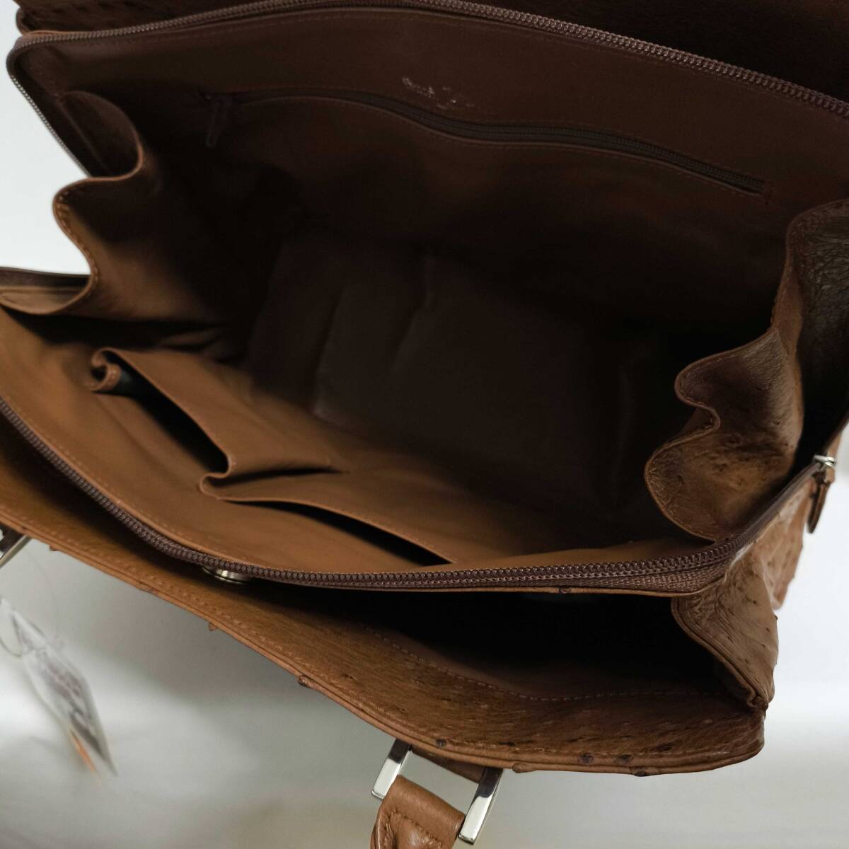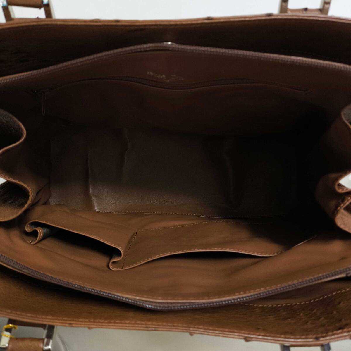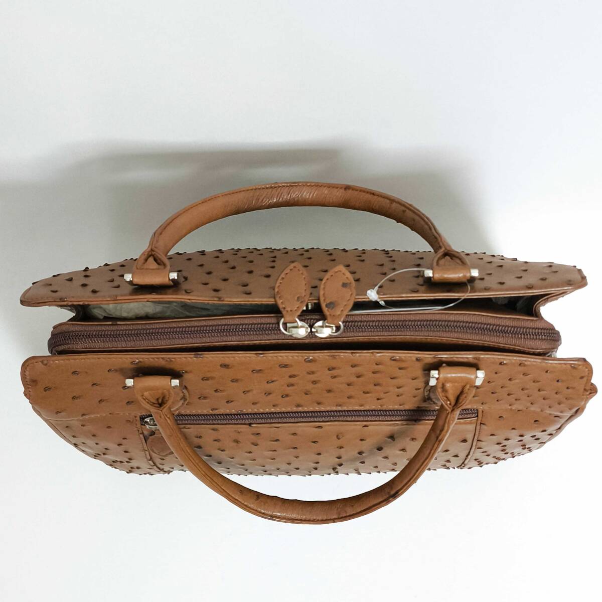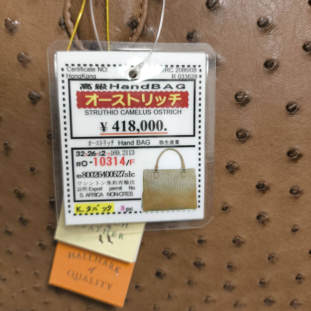 【未使用品】オーストリッチ(ダチョウ革)レザー ハンドバッグ ニコチン(ブラウン) / o-10314