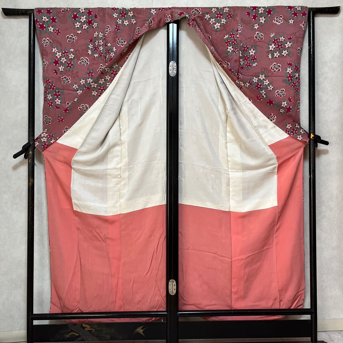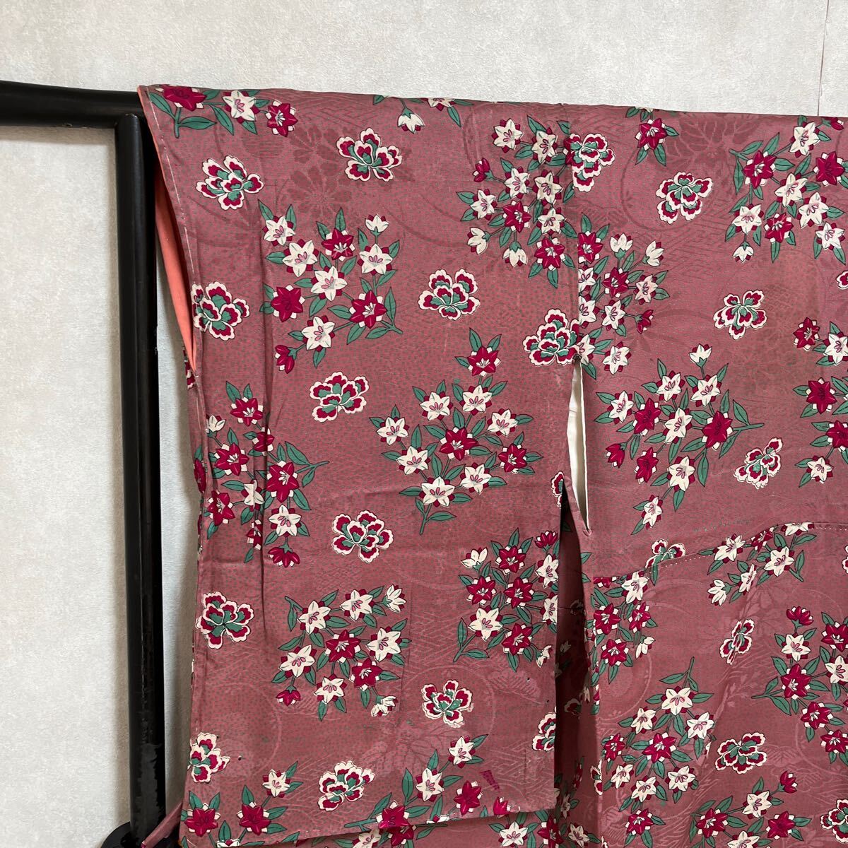 アンティーク 着物 正絹 昭和レトロ 大正ロマン モダン 和洋折衷コーデ リンドウ ばち襟 一部しつけ糸 リメイク け10-3k
