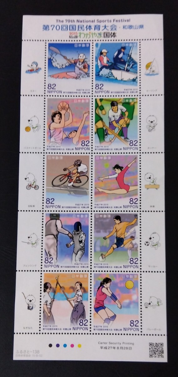 2015年・ふるさと切手-第70回国民体育大会シート(和歌山)解説書付