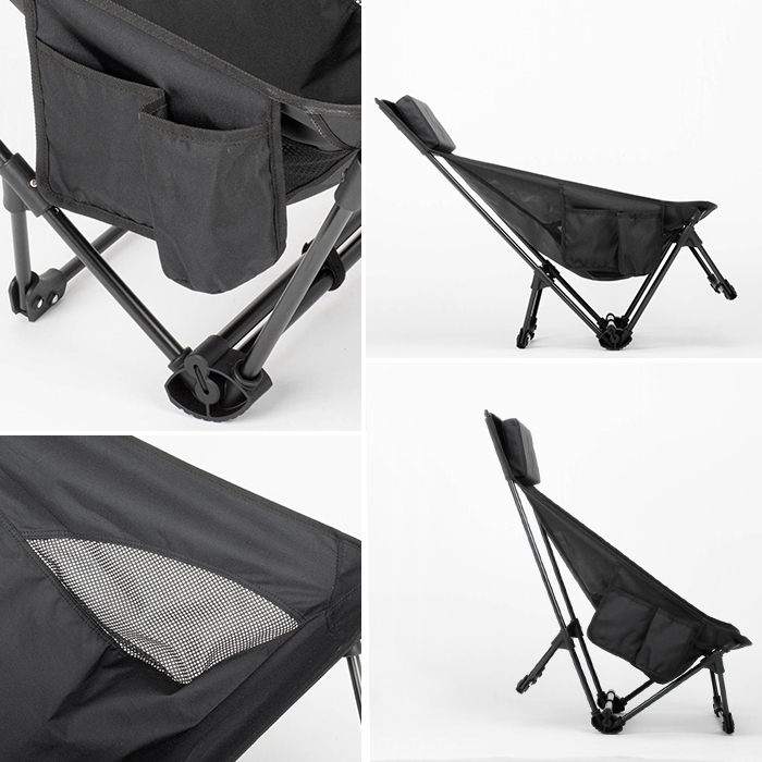 軽量・コンパクトな組立式チェア。 座ったままで角度調節可能。 収納袋はフレームに取り付け可能。 便利なサイドポケット付き。 |