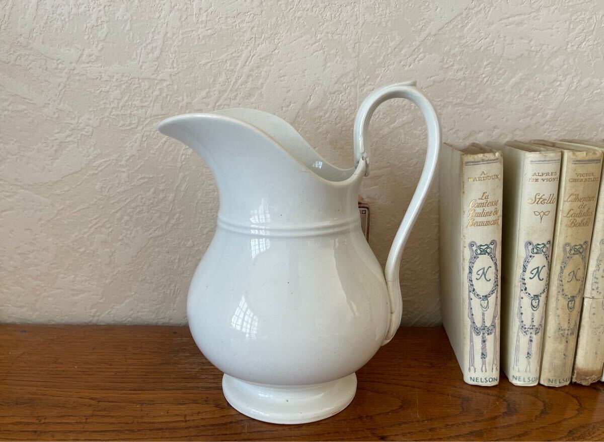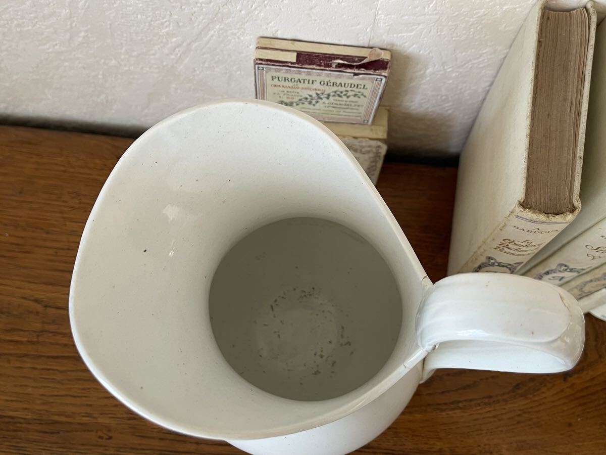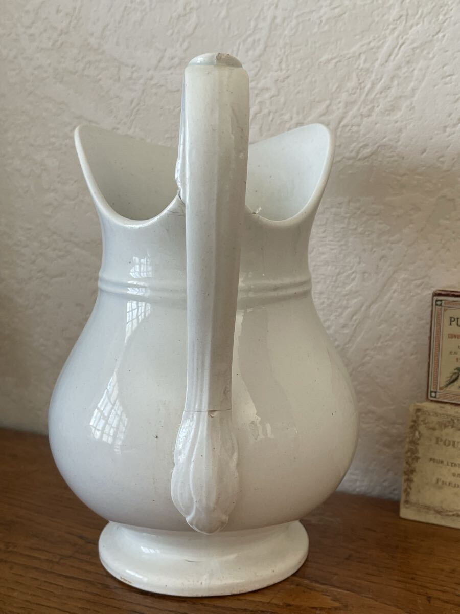 ジアン製、アヒルの口の形をした白い陶器製のピッチャーになります。
