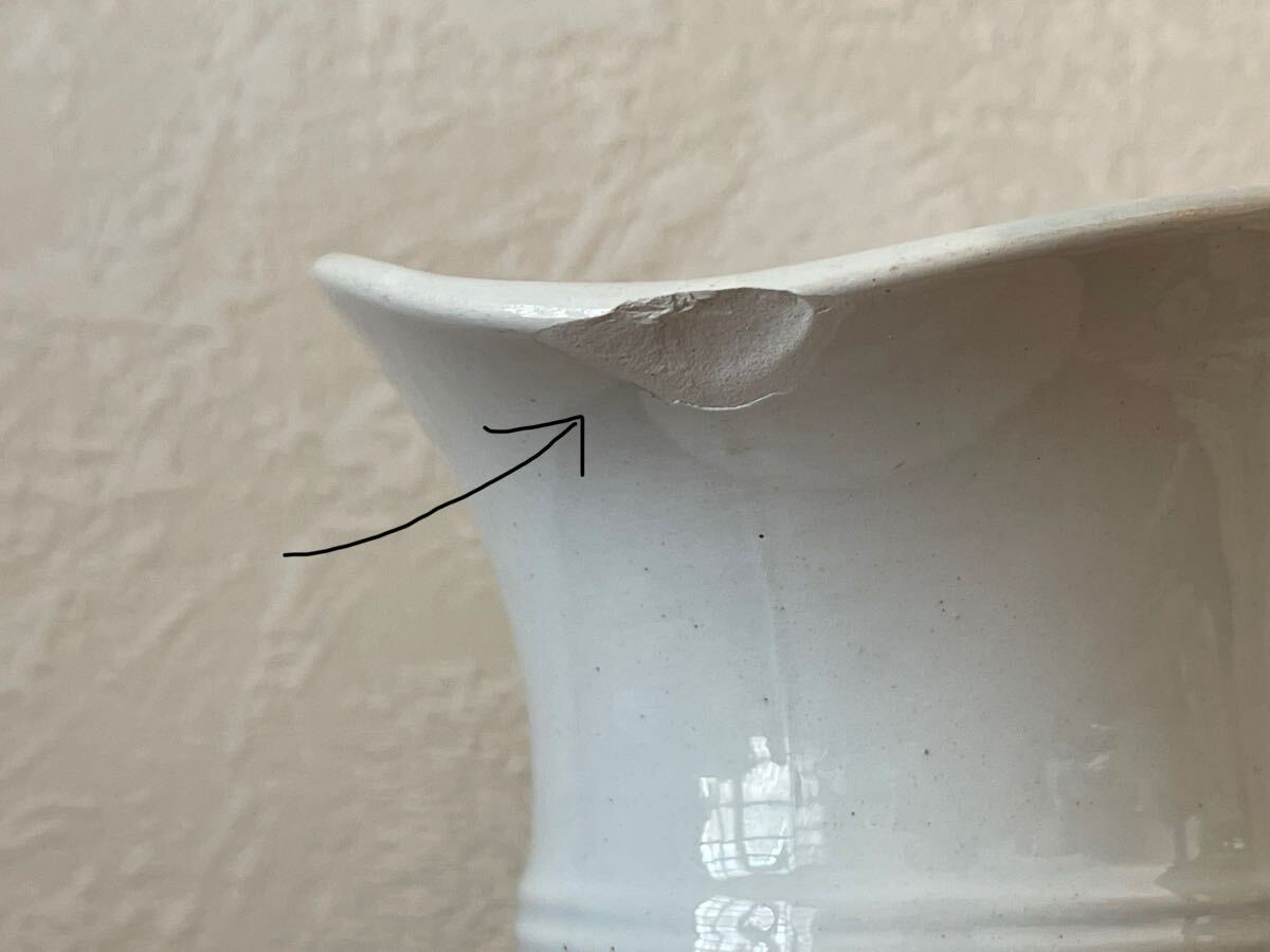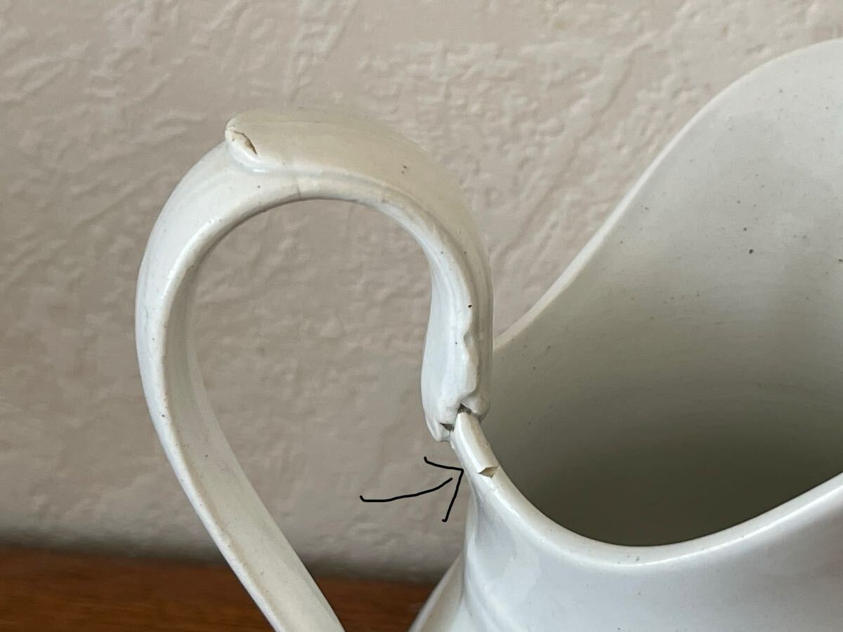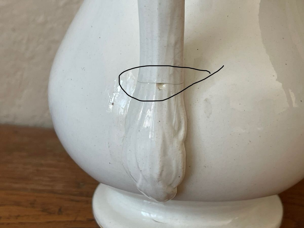 ジアン製、アヒルの口の形をした白い陶器製のピッチャーになります。
