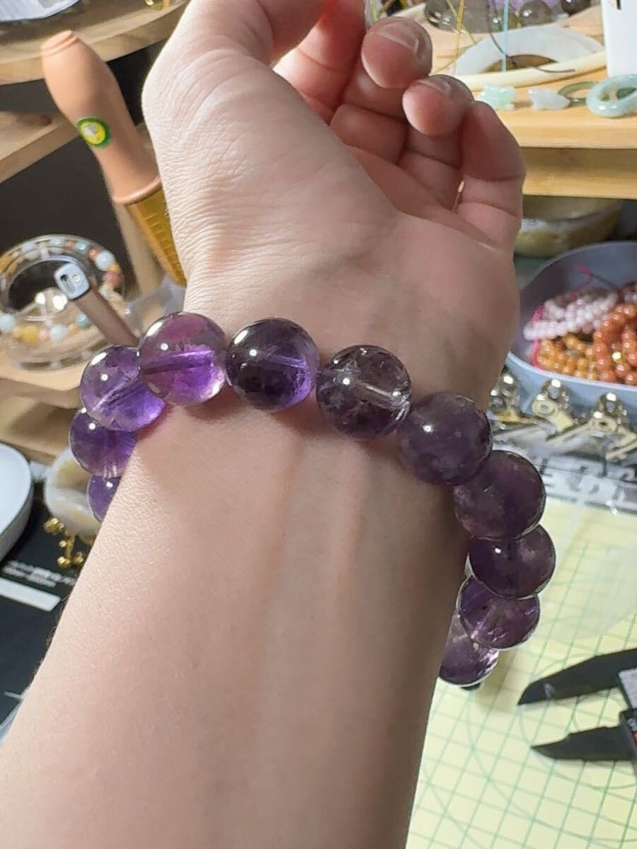 SS-0335 天然水晶 紫ウサギ毛 福禄寿《幸福を高める》「心地よいお日様を浴びて」パワーストーンブレスレット18cm 天然石