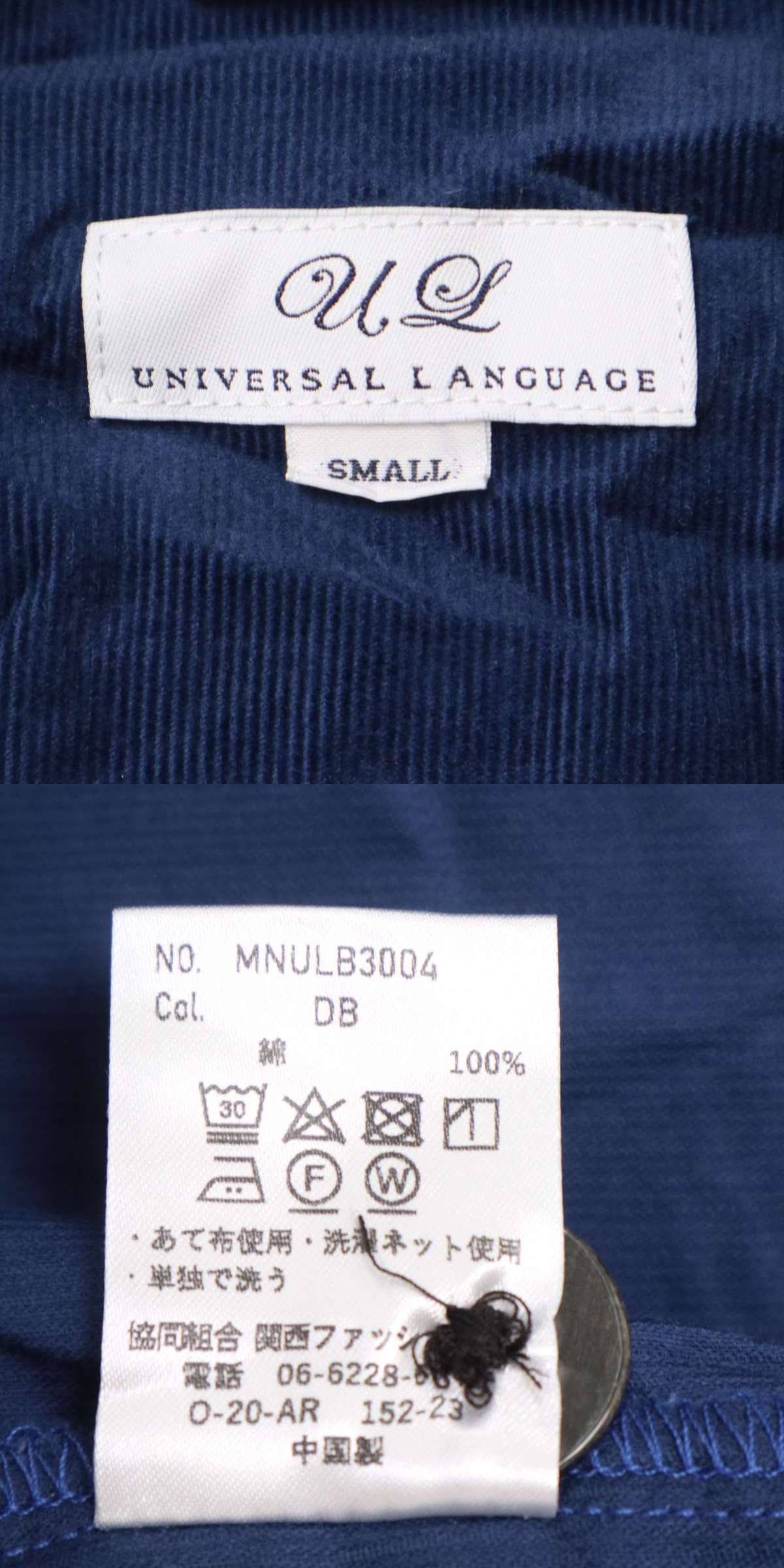 UNIVERSAL LANGUAGE ユニバーサルランゲージ ウォッシャブル コーデュロイ★ テーラード ジャケット Sz.S メンズ ネイビー