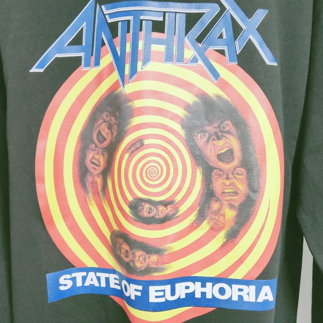 アンスラックスの4thアルバム「State of Euphoria」をモデルにしたアイテム。アンスラックスらしい、コミカルな表現が魅力的な本商品。力強いロゴ&グラフィックがフロントに施され、ライブや普段着としても存在感抜群の一着。