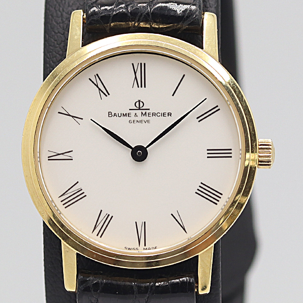 デッドストック級 稼動 美品 ボーム&メルシェ 18K/750/YG/11.0g QZ MV045089 白文字盤 レディース腕時計 15713ABC5367010 3OKT MSS