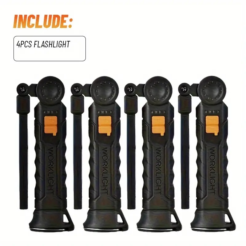 ★強力COB ワークライトLED 作業灯 USB充電式 折り畳み 360度回転 側面マグネット ハンディライト バッテリー残量インジケーター付 4個