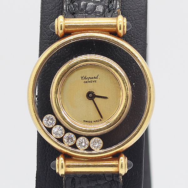 デッドストック級 ショパール ハッピーダイヤモンド 20/4780-23 18K/YG 総16.5g ゴールド盤 QZ レディース腕時計 0087010 7ERT ABC16411