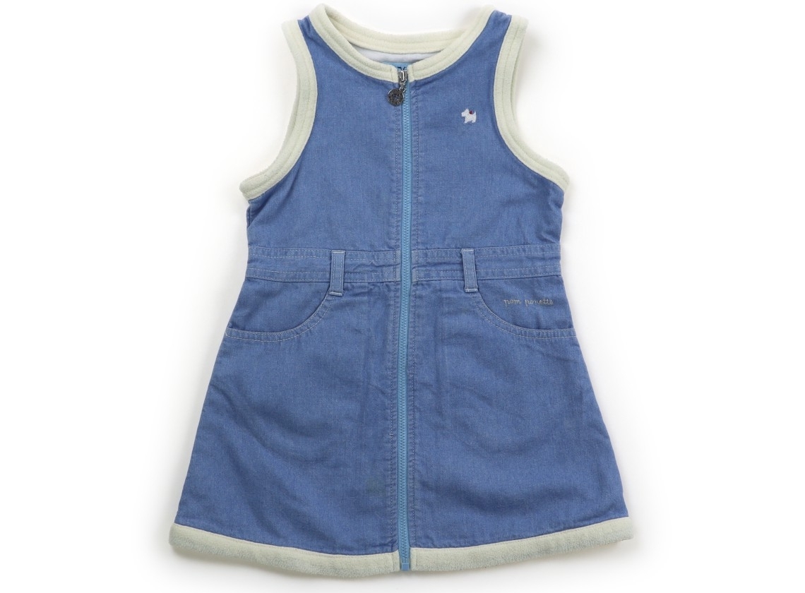 デニム風カットソー。裏起毛。ファスナー開き。ベルトは欠損しております。前身頃に黄色いシミが点在してあります。外遊びや洗い替え用にいかがでしょうか?