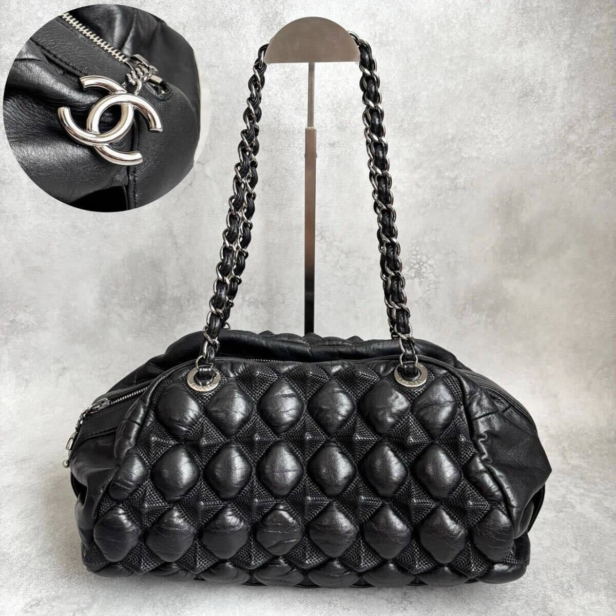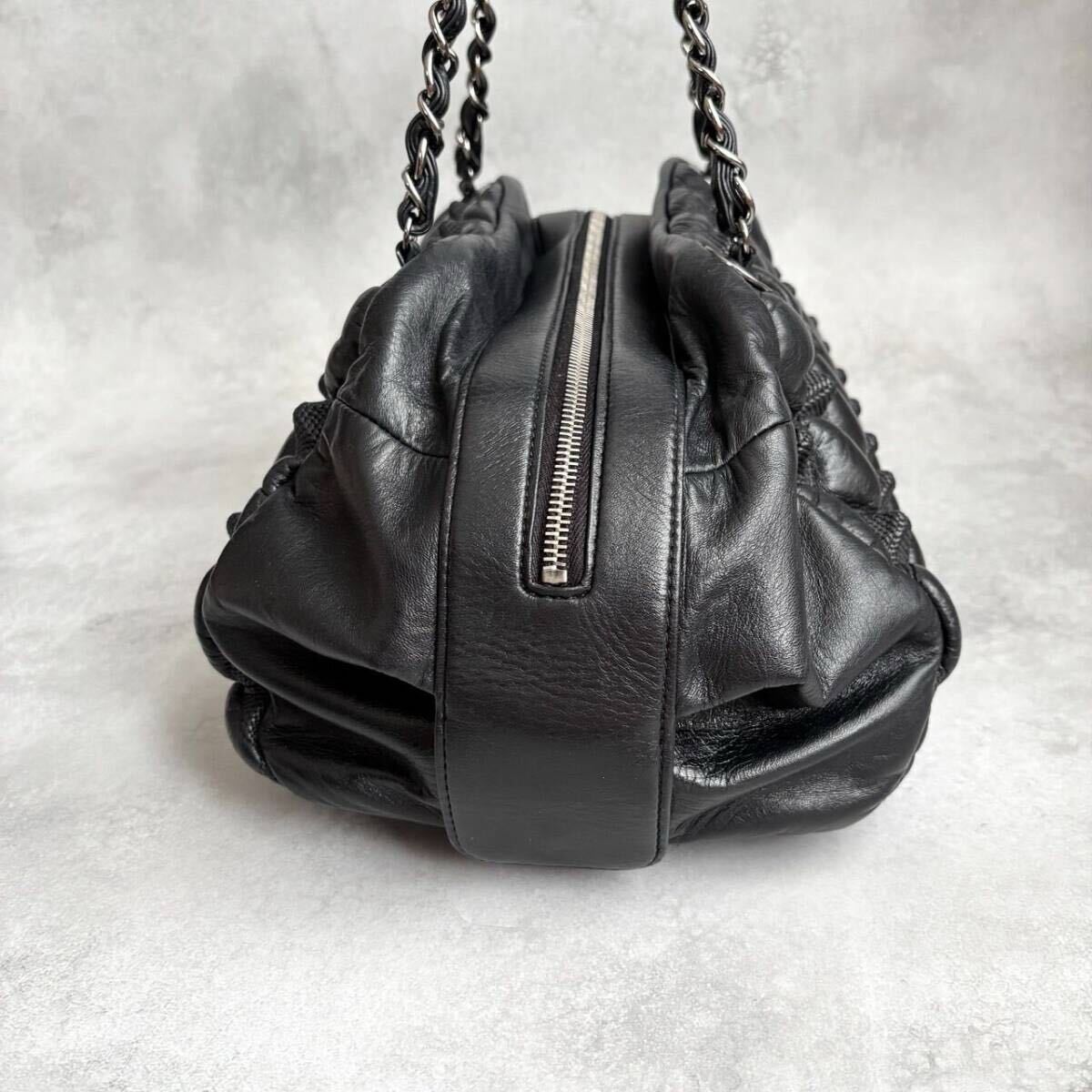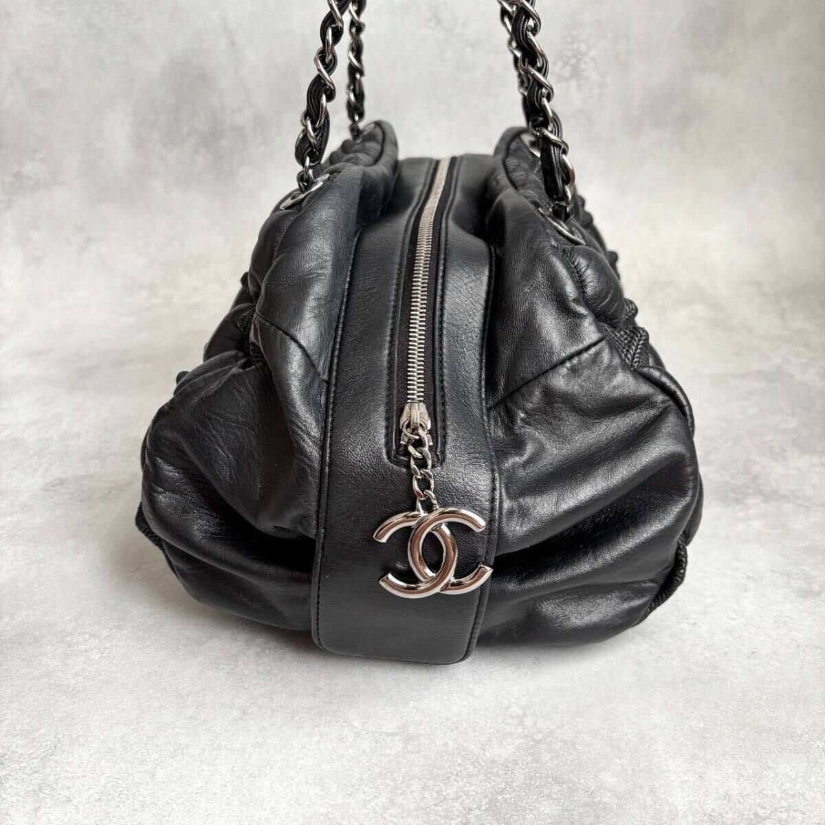アイコニックなチェーンショルダーと、ジップにあしらわれたココマークがラグジュアリーな存在感を放ちます。