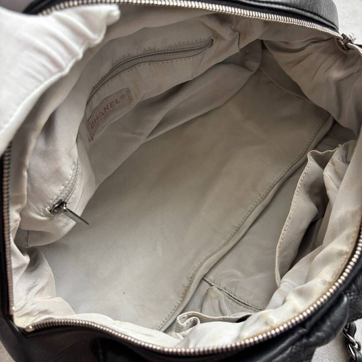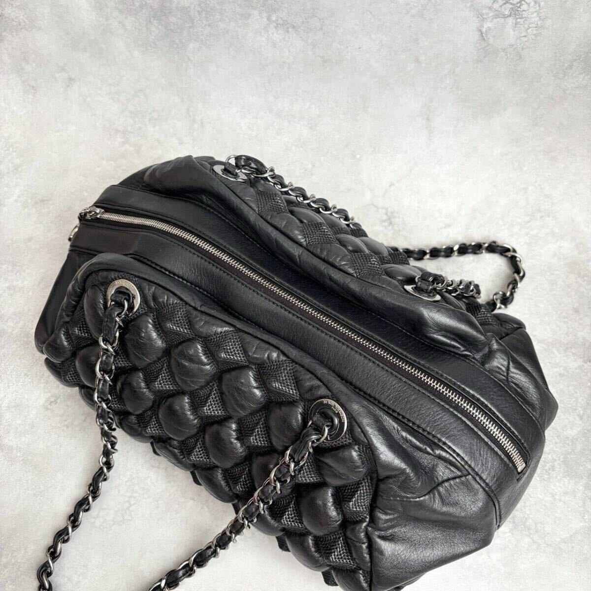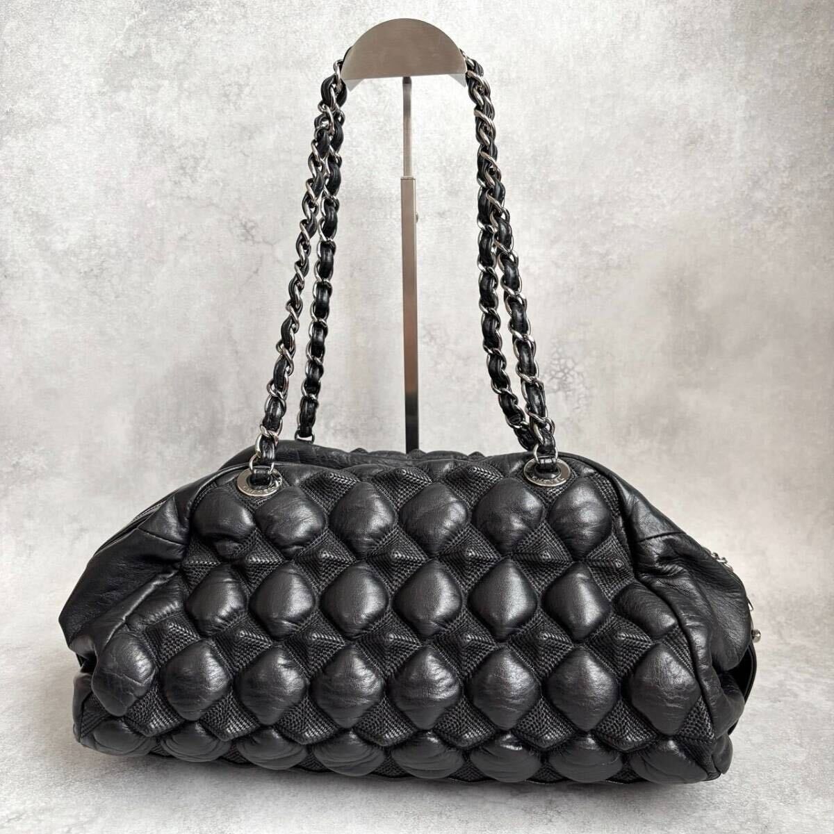 アイコニックなチェーンショルダーと、ジップにあしらわれたココマークがラグジュアリーな存在感を放ちます。