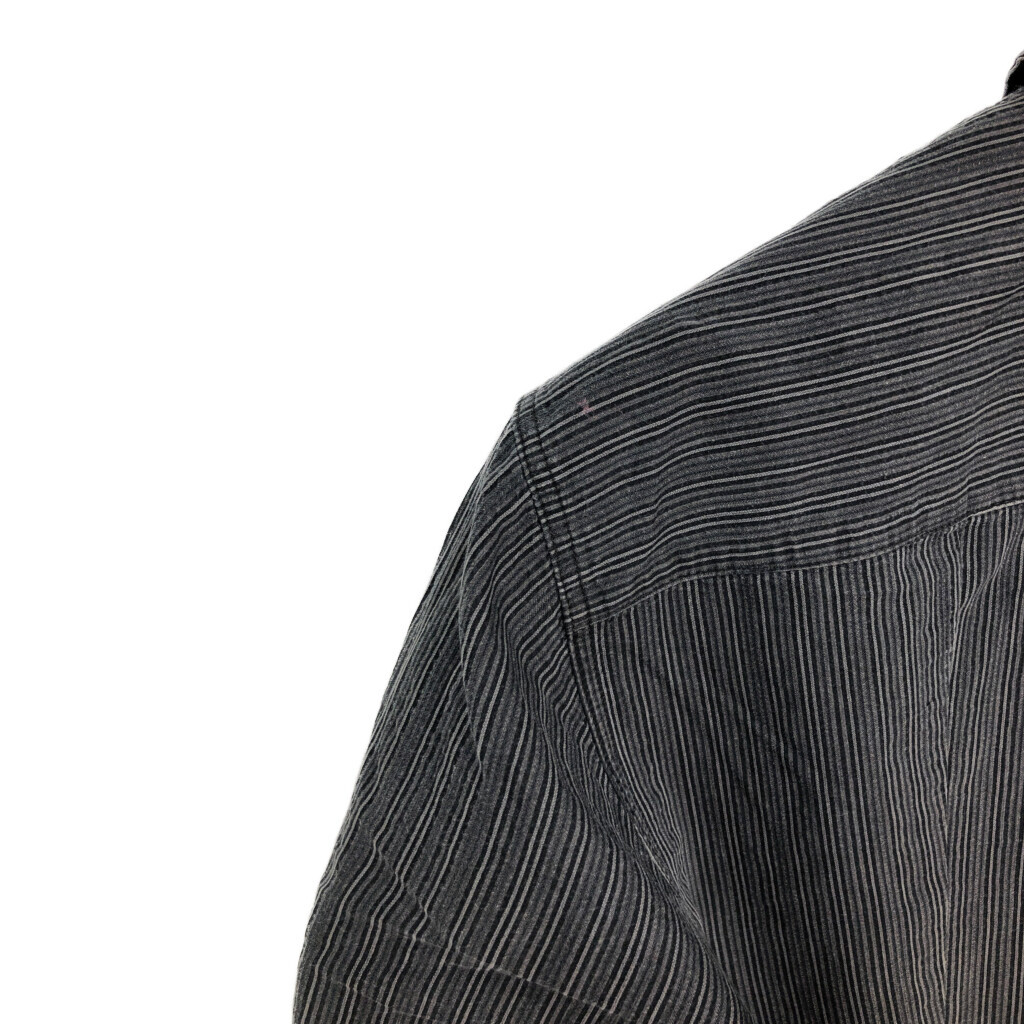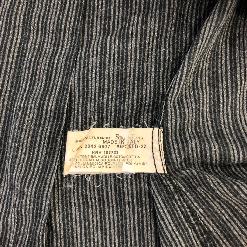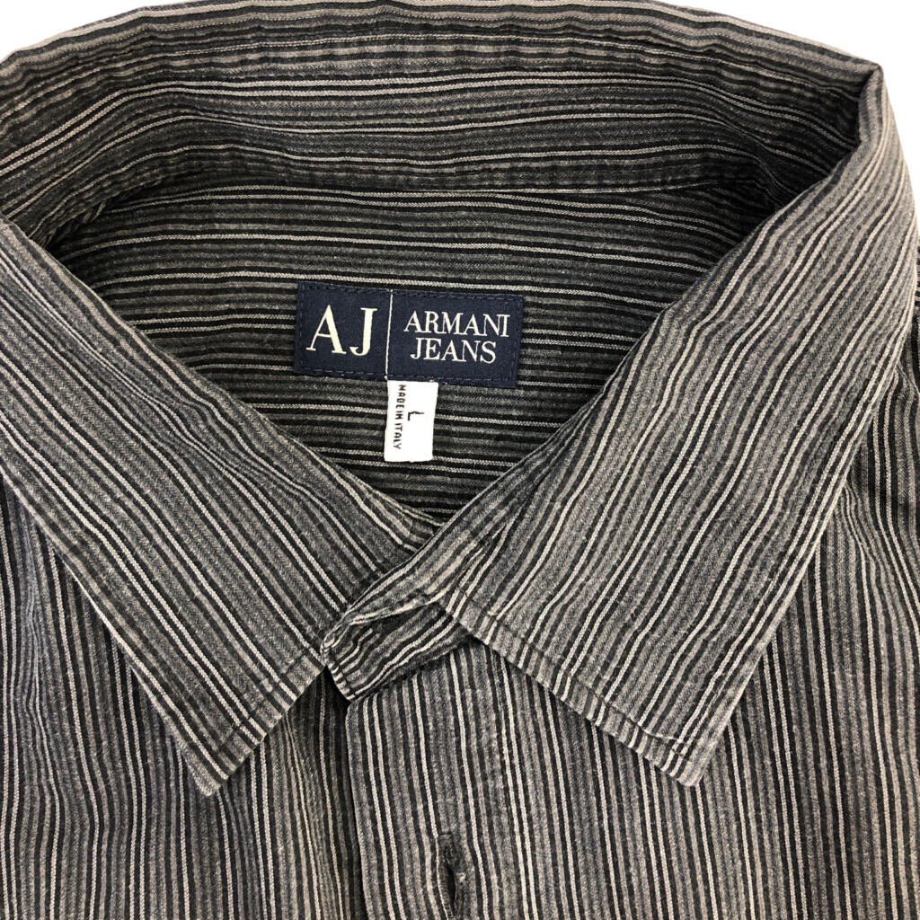 【商品管理番号】 R7320 【ブランド】 ARMANI JEANS/アルマーニ ジーンズ 【サイズ】 L 【実寸サイズ】 肩幅:約46cm 着丈:約78cm 身幅:約52cm 袖丈:約66cm 【主な素材】 表地 : コットン 【色】 グレー 【仕様】 生産国 : イタリア製 90年代 ストライプ 【状態】 汚れ:肩 キズ:袖 |