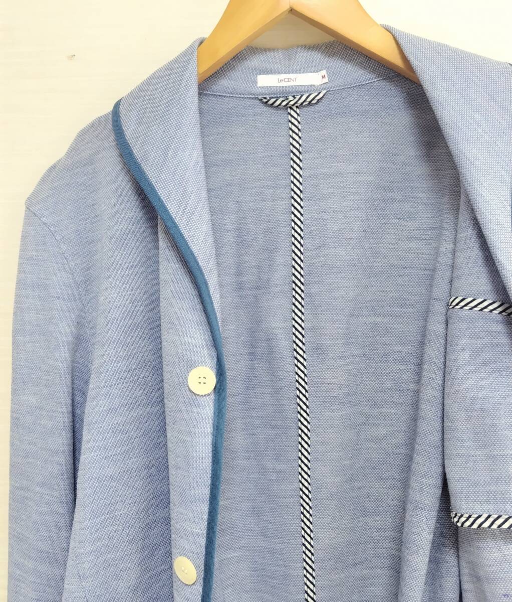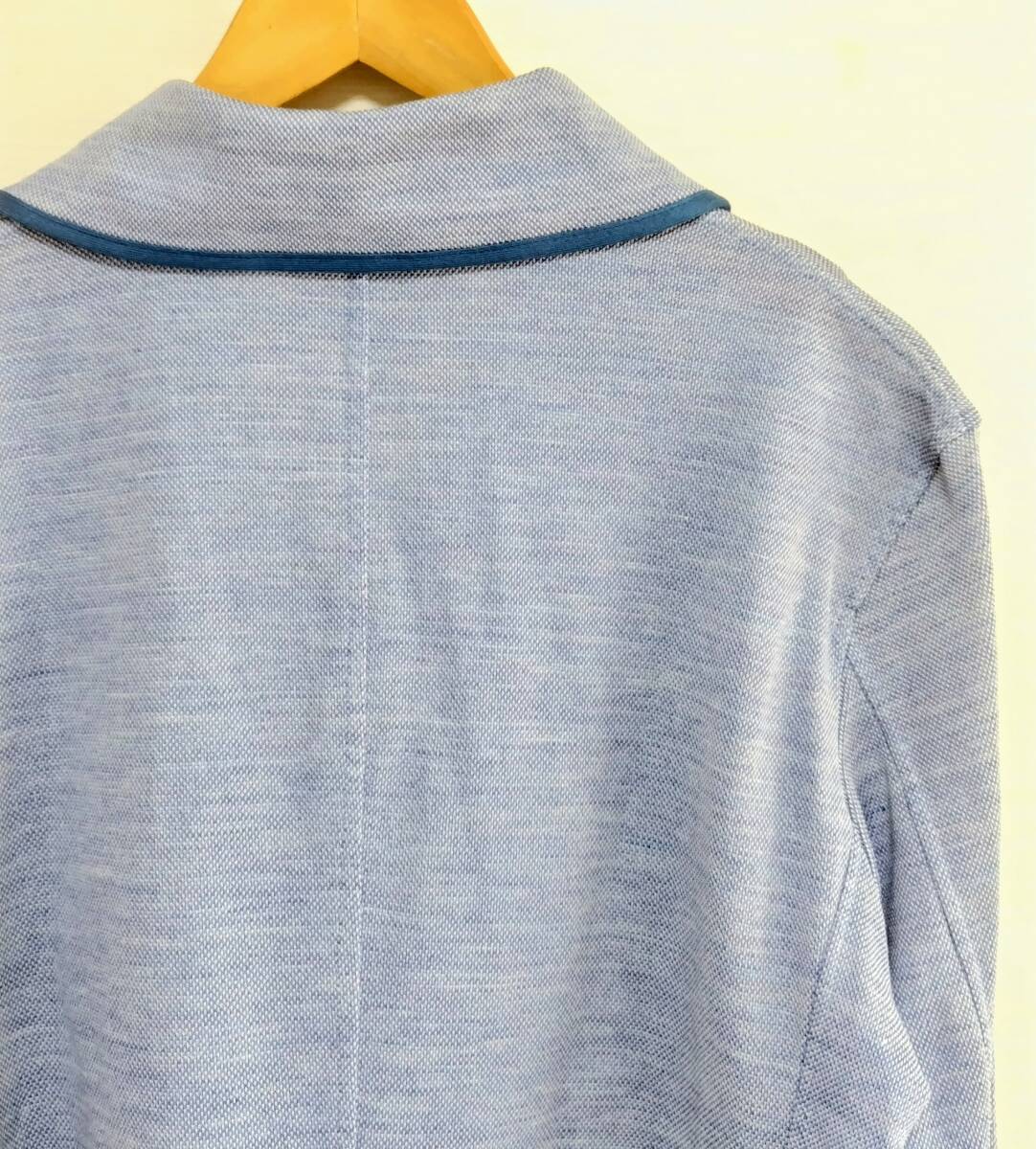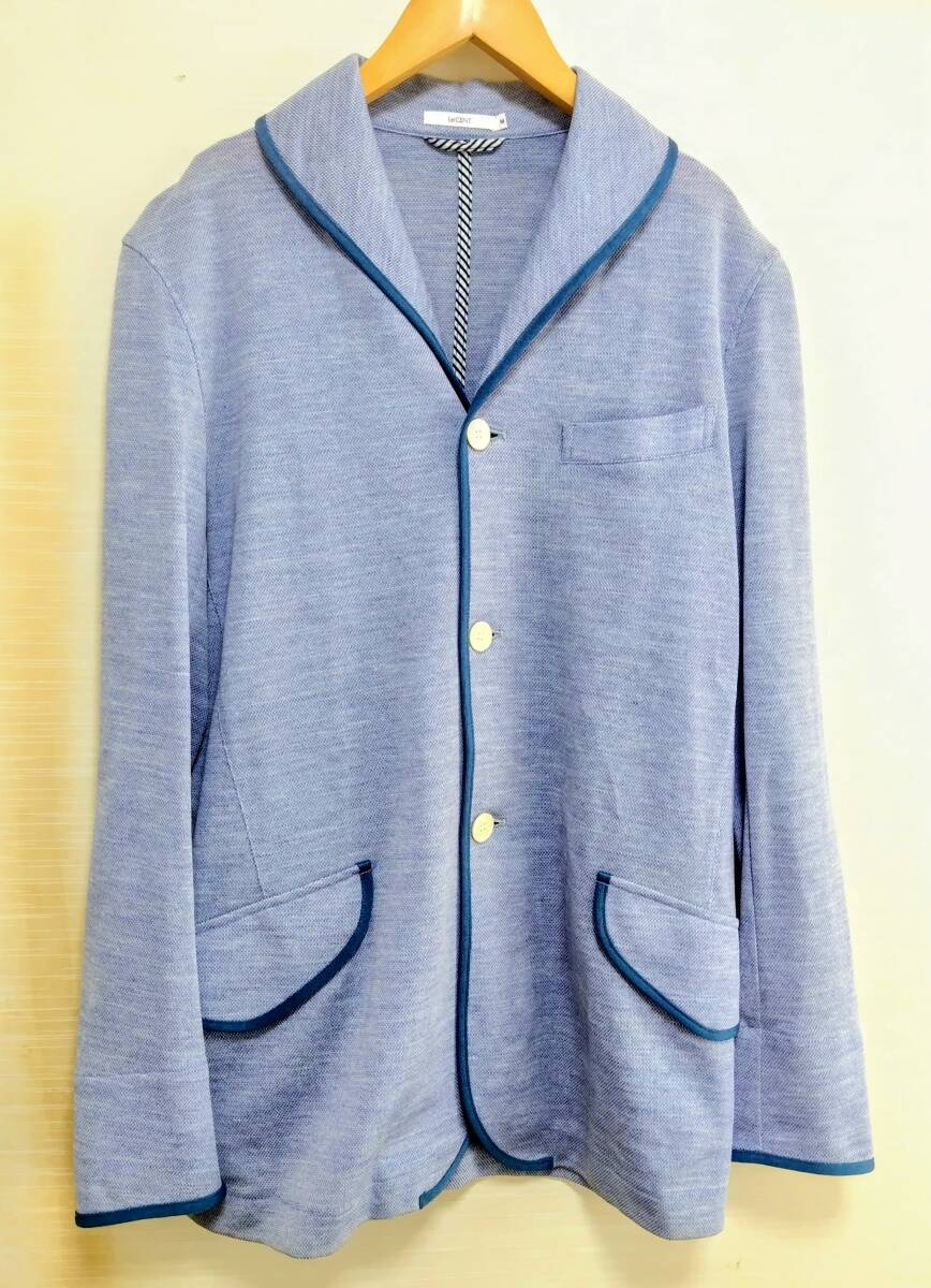 LeCENT レセント ショールカラー 麻混 ラミー リネン テーラードジャケット ブレザー シャンブレーブルー M メンズ 日本製