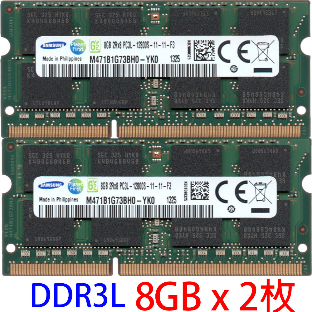 【DDR3L 8GBx2枚 合計16GB ノートPC用】<動作確認済>SAMSUNG 低電圧メモリ 1.35V DDR3L-1600 (PC3L-12800S)M471B1G73BH0-YK0【中古】H757