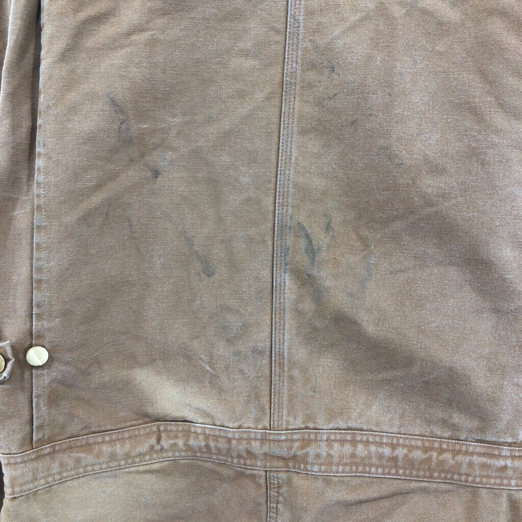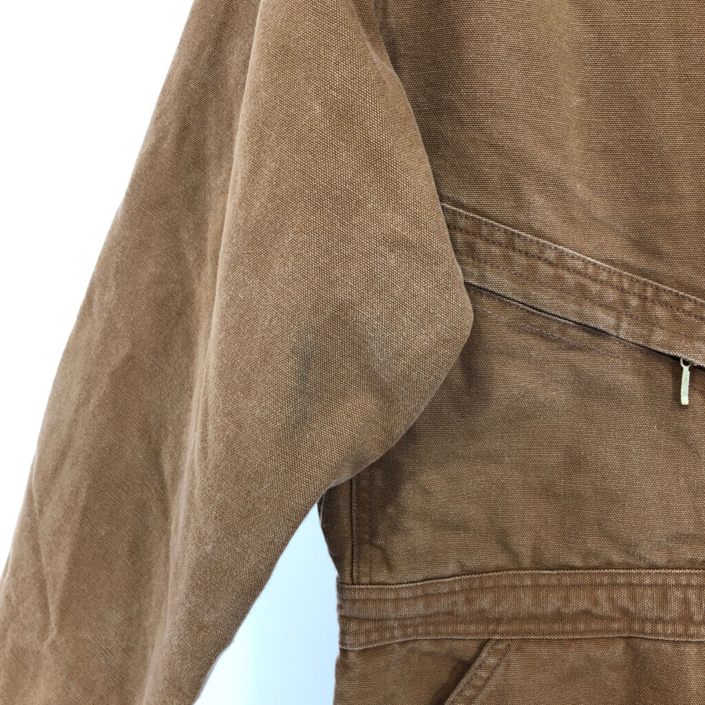 【商品管理番号】 R5961 【ブランド】 Carhartt/カーハート 【サイズ】 L相当 【実寸サイズ】 総丈:約166cm 肩幅:約49cm 身幅:約61cm ウエスト:約98cm 股下:約76cm わたり幅:約36cm 裾幅:約27cm 袖丈:約63cm 【主な素材】 表地 : コットン 裏地 : 13848 中綿 : 13897 【色】 ライトブラウン 【仕様】 裏地キルティング 【状態】 汚れ:全体 特記事項:使用感あり、色褪せ |