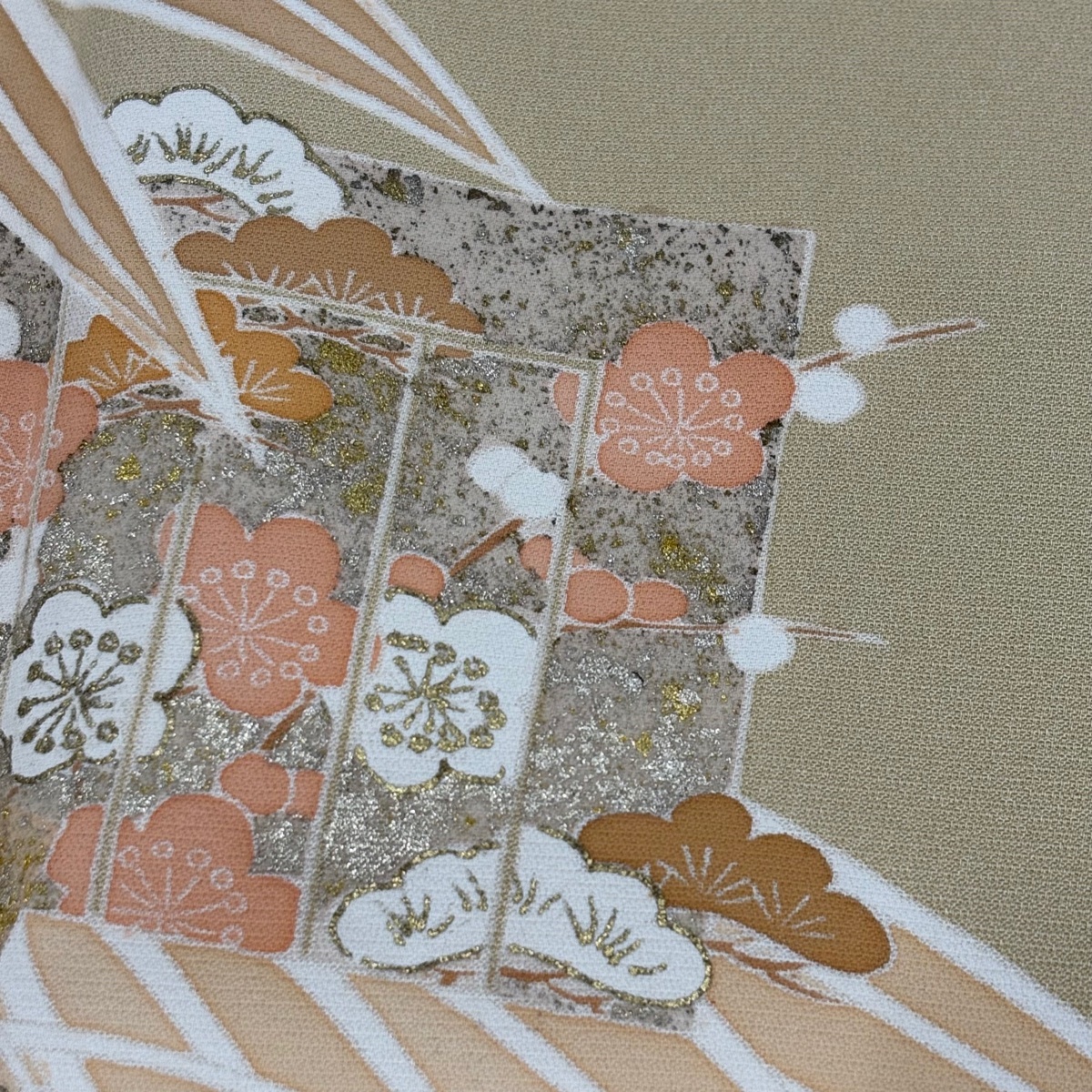 | 付下げ 秀品 落款 竹 源氏香 金銀彩 ベージュ 袷 身丈167 裄丈66 M 正絹 【中古】 |